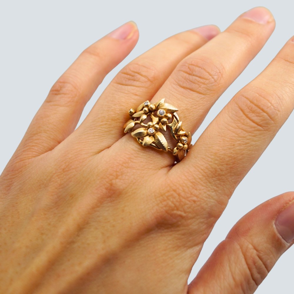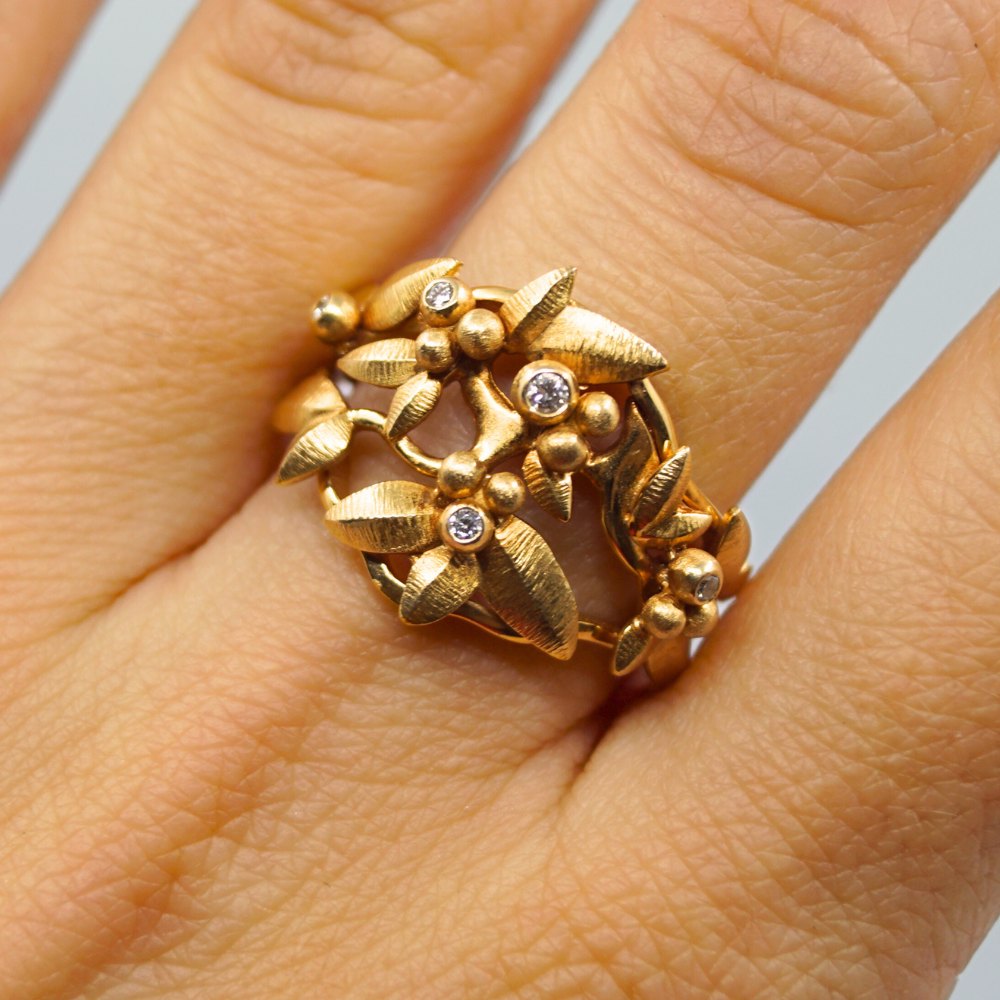 Ole Lynggaard gold jewellery.Charlotte Lynggard for Ole Lynggaard; Spring ring with five diamonds, a total of 0.06 ct. TW VS. In 18k gold. Ring size app. 53