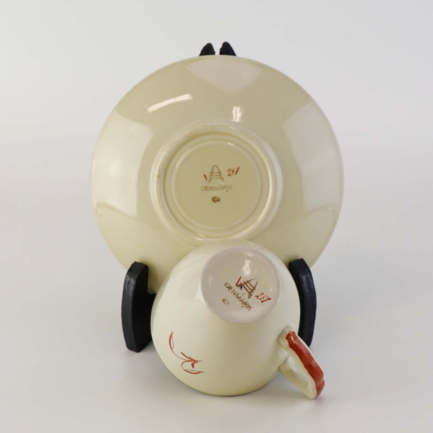 Kaffekop med underkop i fajance fra stellet Mariager. Nr. 257Formgiver Thorkild Olsen