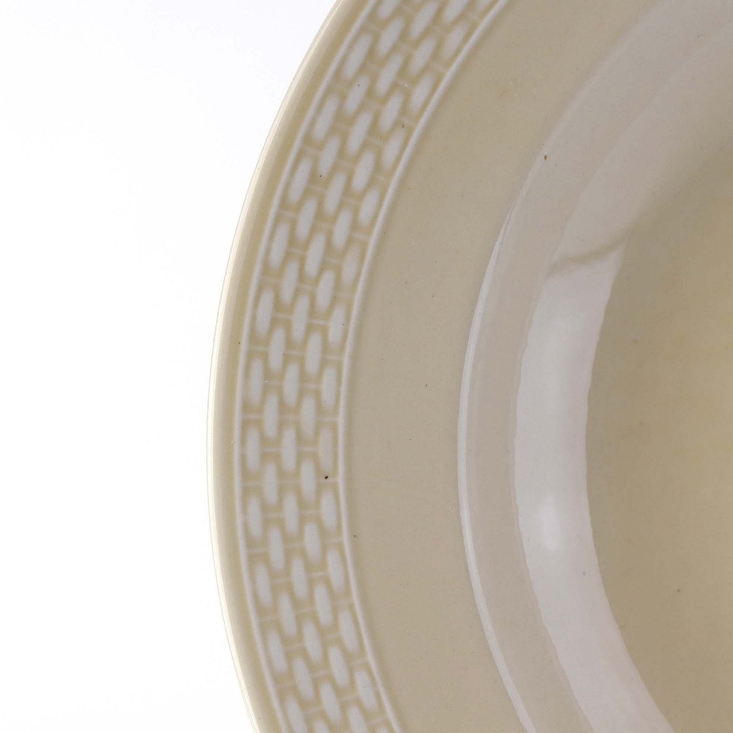 Sandfarvet fajancestel i stelform Viktoria II - Fletværk med dekoration af hvidt flet på gullig baggrund.