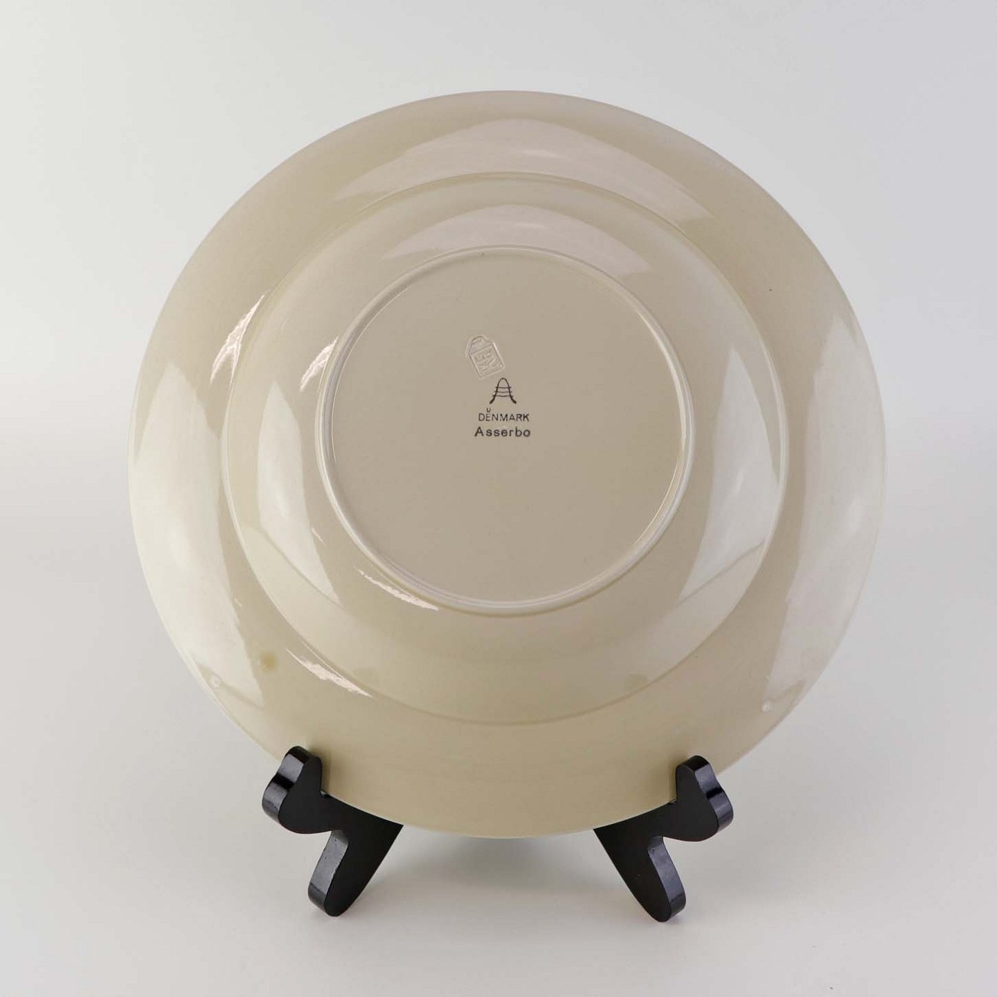 Stor dyb tallerken i fajance fra stellet Asserbo fremstillet i perioden 1933-1965Formgiver Nils Thorsson