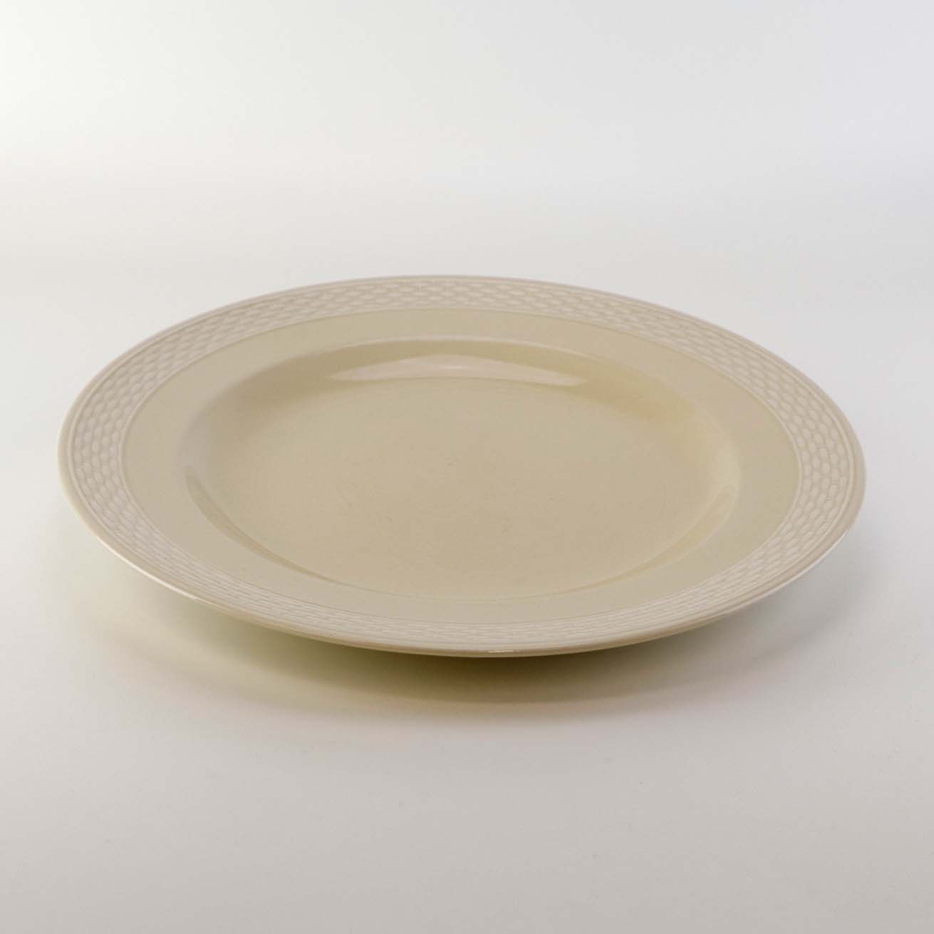 Sandfarvet fajancestel i stelform Viktoria II - Fletværk med dekoration af hvidt flet på gullig baggrund.