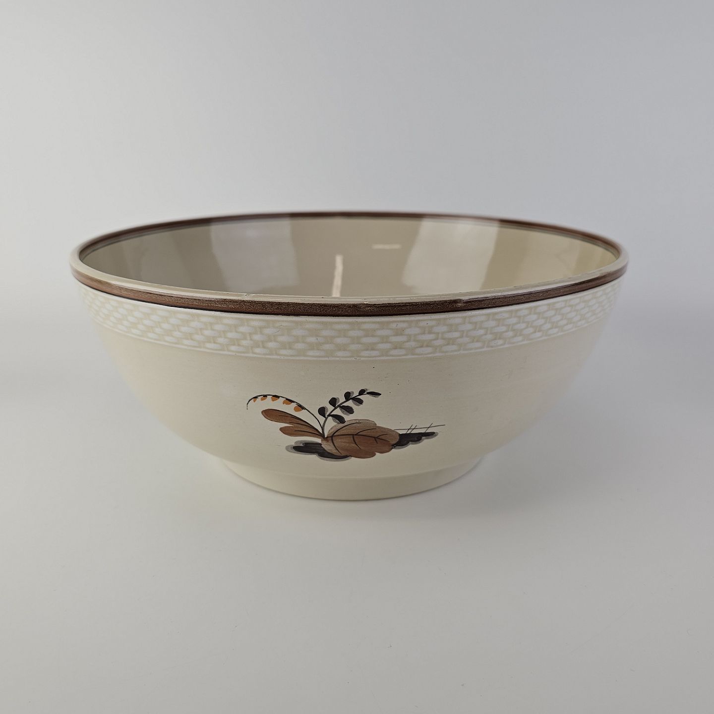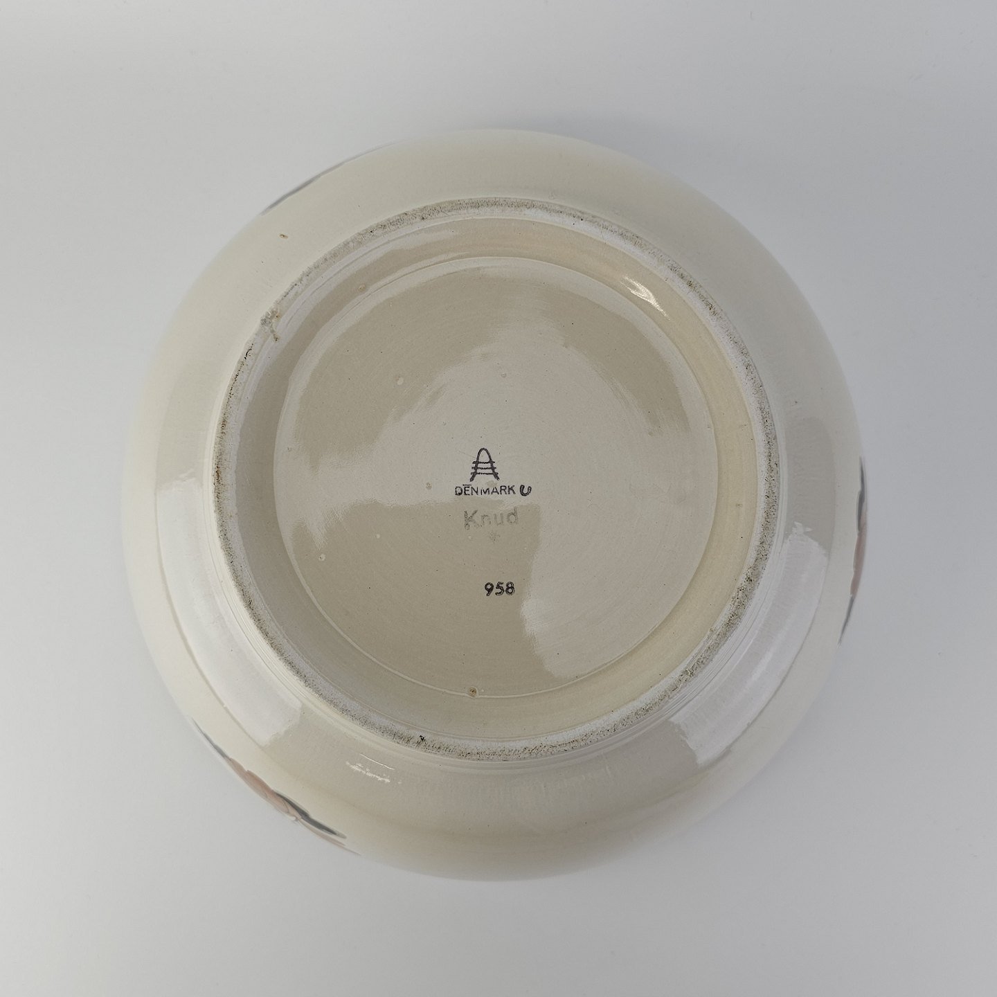 Knud er cremefarvet fajance dekoreret med flettet kant og brune og orange blomster. Stellet blev produceret i år 1934-1963.