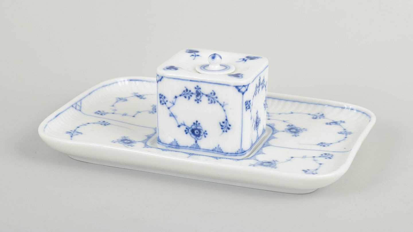 Royal Copenhagen was founded in 1775 and is one of Europe’s oldest porcelain manufacturers. Blue Fluted Plain is the company’s most iconic pattern, introduced in the 18th century and characterised by its fluted form and hand-painted blue decoration. Around 1900, the factory also produced desk accessories such as inkwells in the same classic decoration, executed with refined craftsmanship and technical precision.