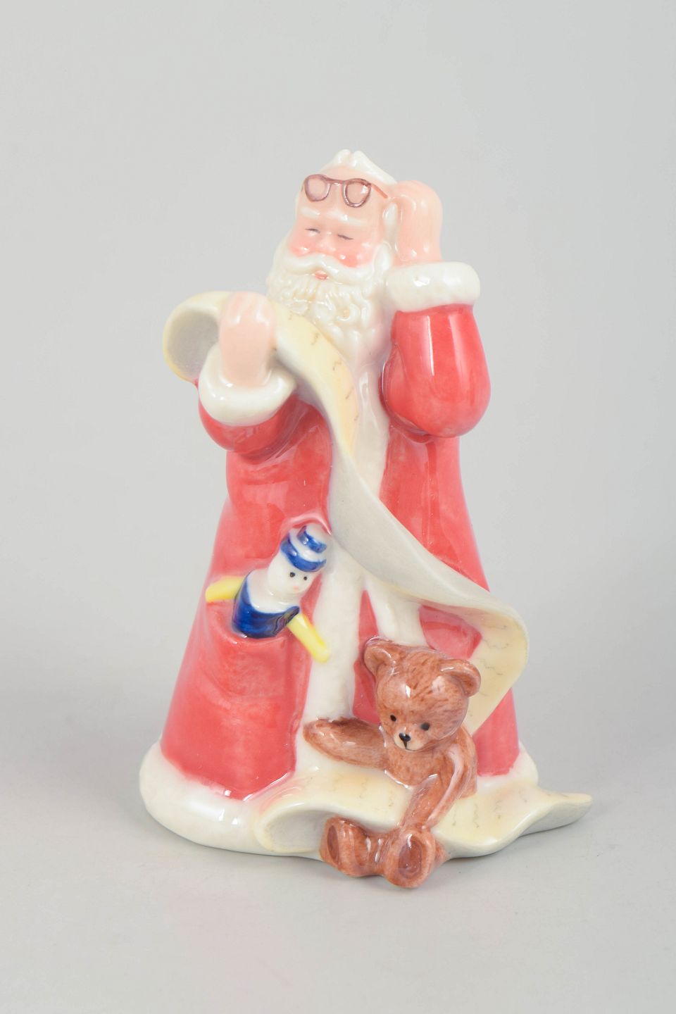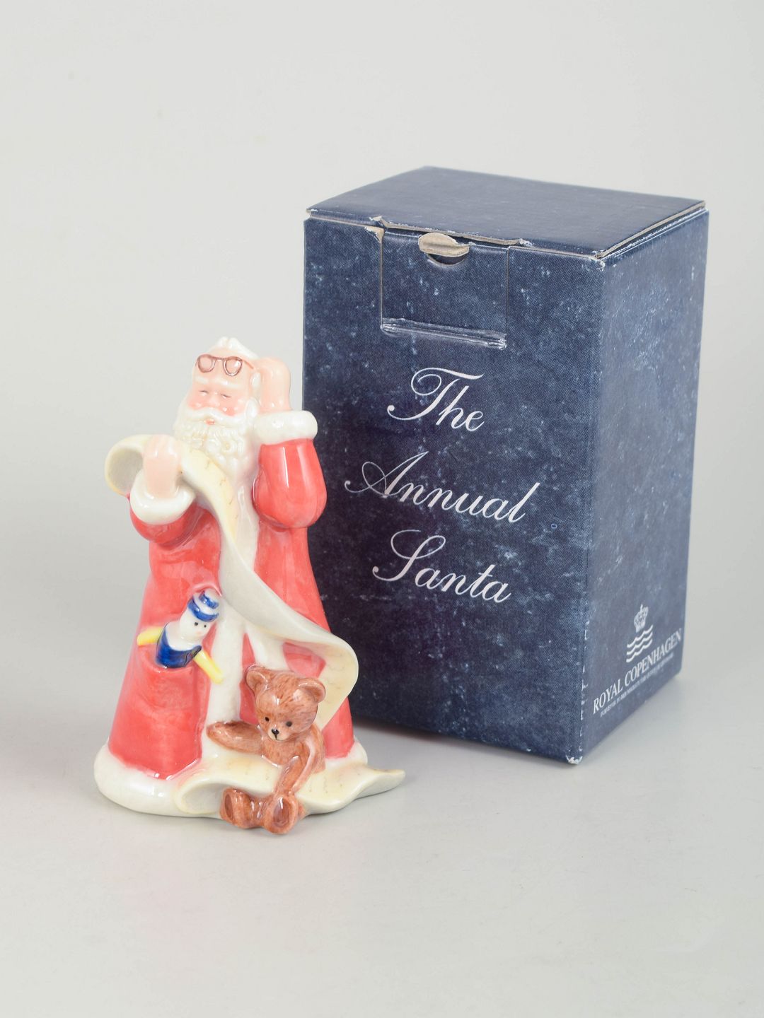Royal Copenhagen, Rare Santa Claus figurine.Decorative Santa Claus figurine in hand-painted porcelain from 2003, designed with teddy bear and toy. The figure is finely modelled with classic red coat and white fur trim. Comes with original box. First factory quality.