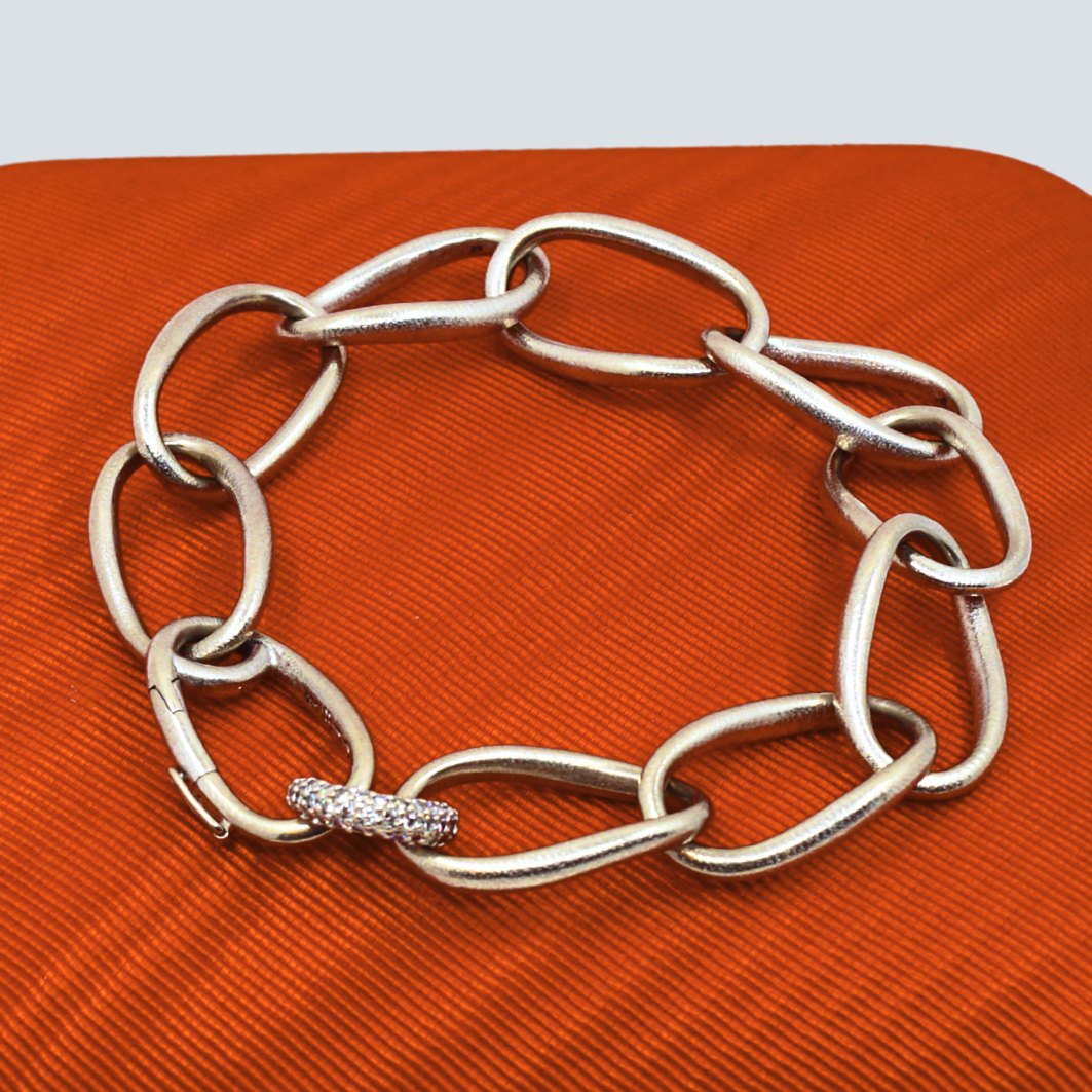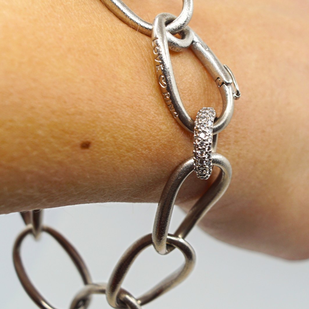 Ole Lynggaard; Love bracelet - heavy, in 14k white gold set with diamonds. Clasp with safety lock. Designed by Charlotte Lynggaard.L. 22.5 cm