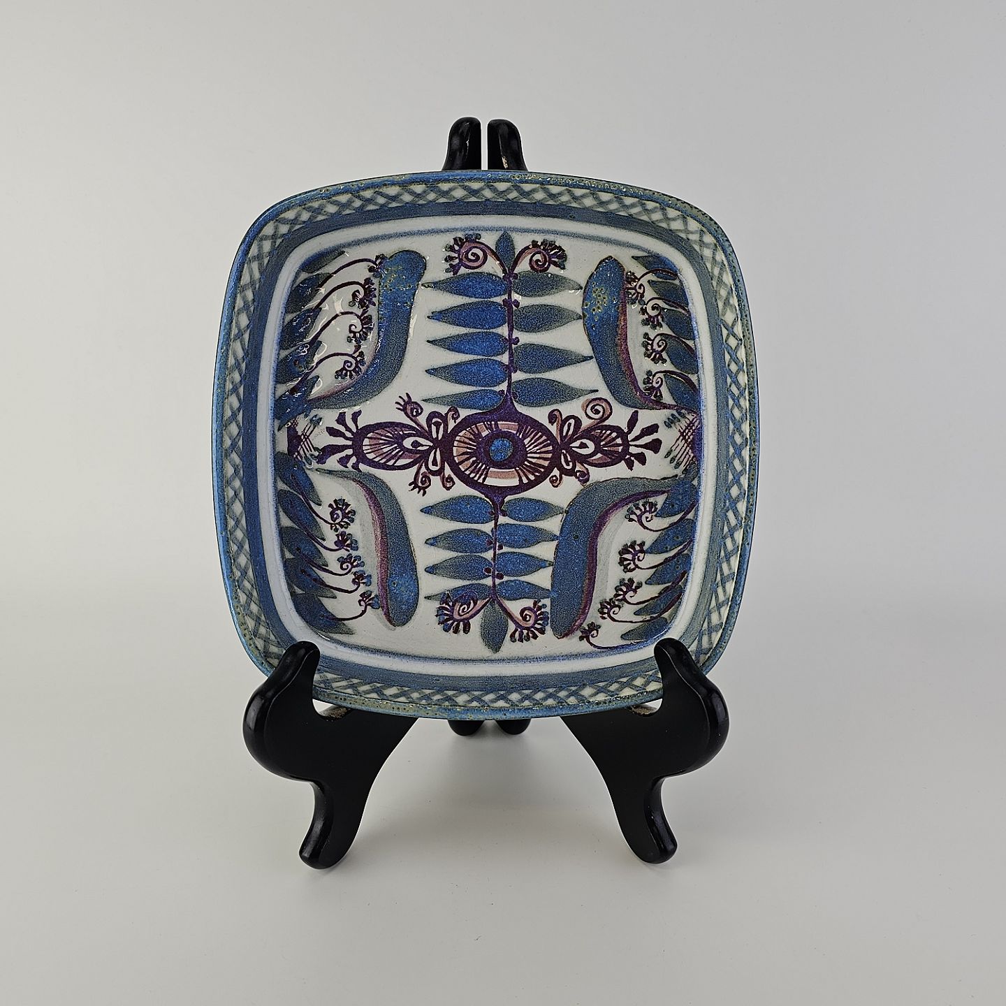 Firkantet fad fra serien Tenera i fajance med abstrakt dekoration i blå nuancerNr. 412/2883