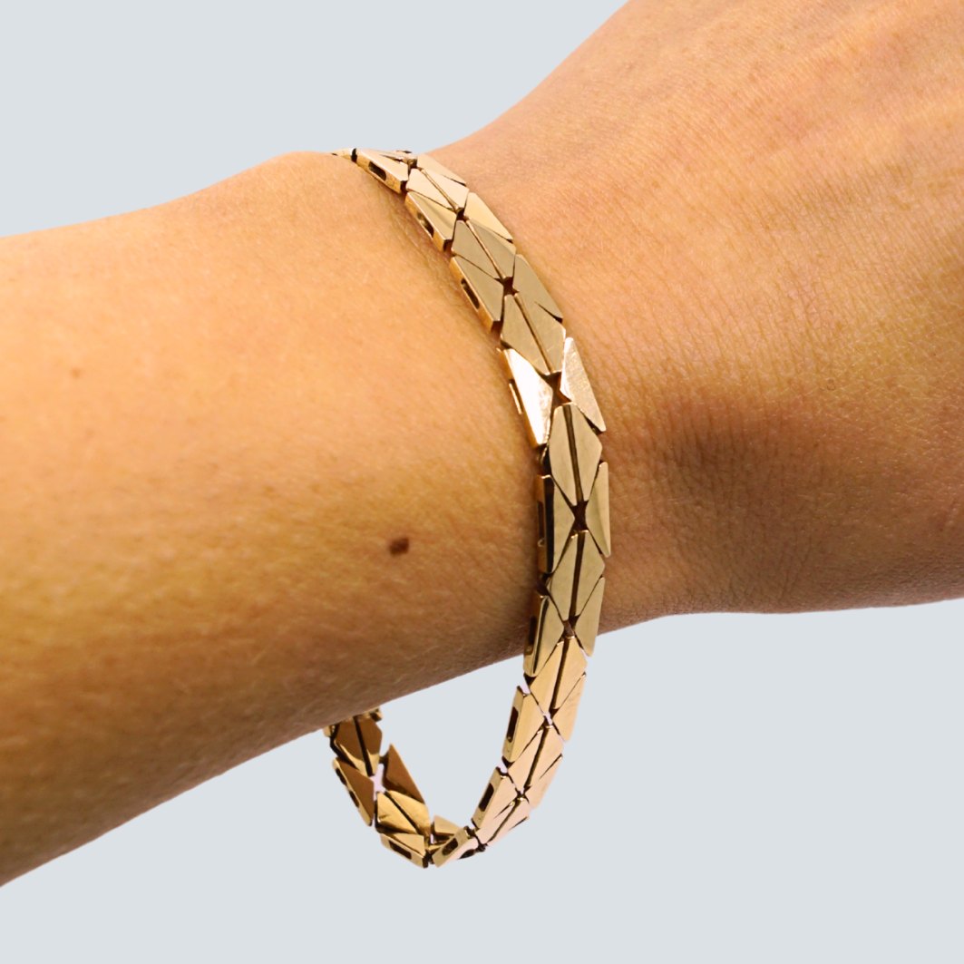 Søren Einar Jensen; Bracelet in 14k gold. Clasp and two safety catches. L. 18.5 cm. W. 0.6 cm. 12.8 grams.Stamped "SEJ 585".