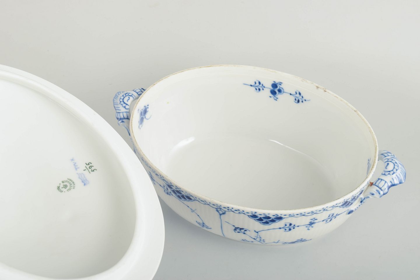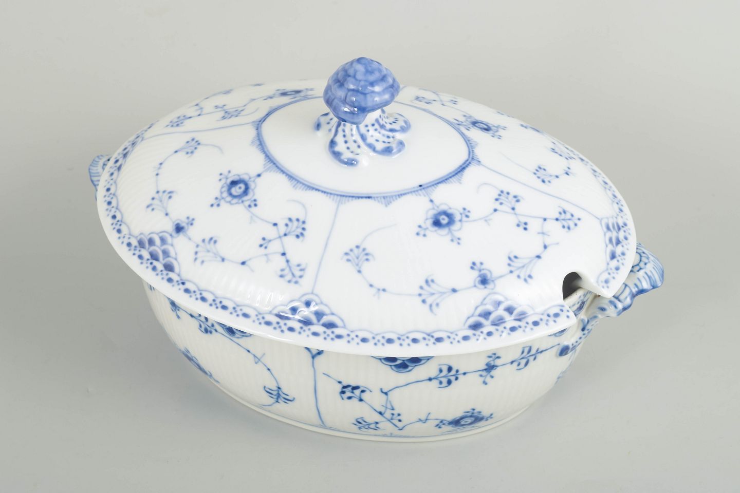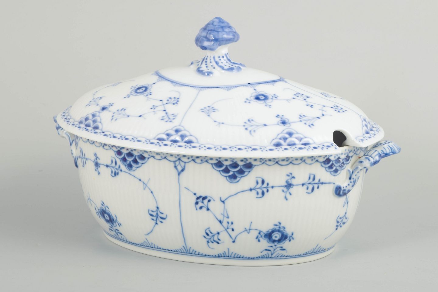 Royal Copenhagen Blue Fluted Half Lace, large tureen.Large tureen in hand-painted porcelain from the Blue Fluted Half Lace service with classic underglaze decoration in cobalt blue and characteristic lace border. Model 1/595. First factory quality.