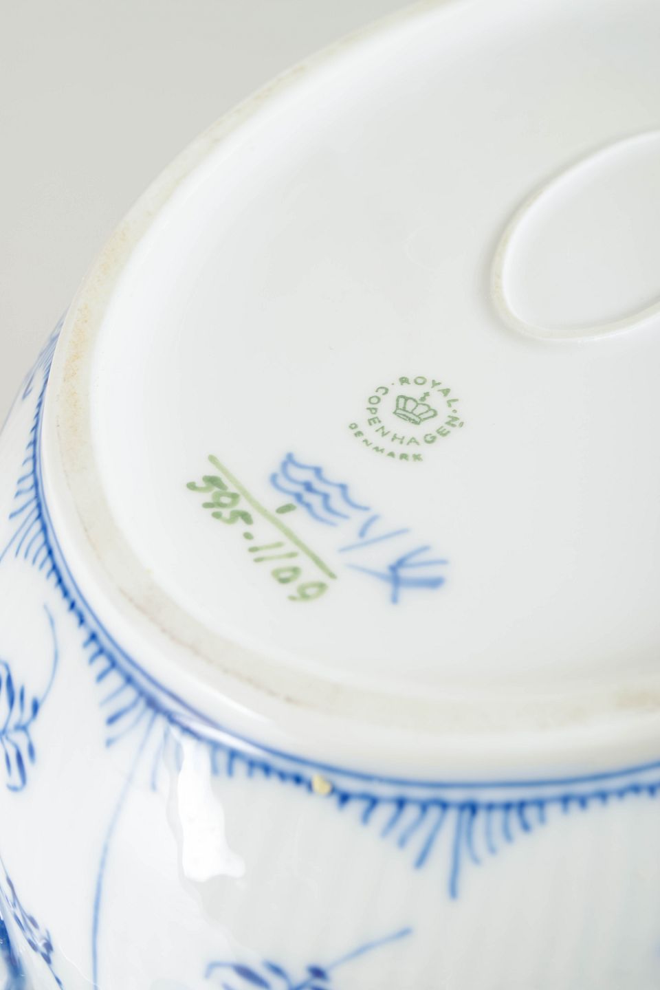 Royal Copenhagen was founded in 1775 in Copenhagen under royal charter. The factory is internationally recognised for its hand-painted porcelain and high artistic standards. Blue Fluted Half Lace is a variation of the classic Blue Fluted service, combining fluted panels with a detailed lace border executed with exceptional craftsmanship.