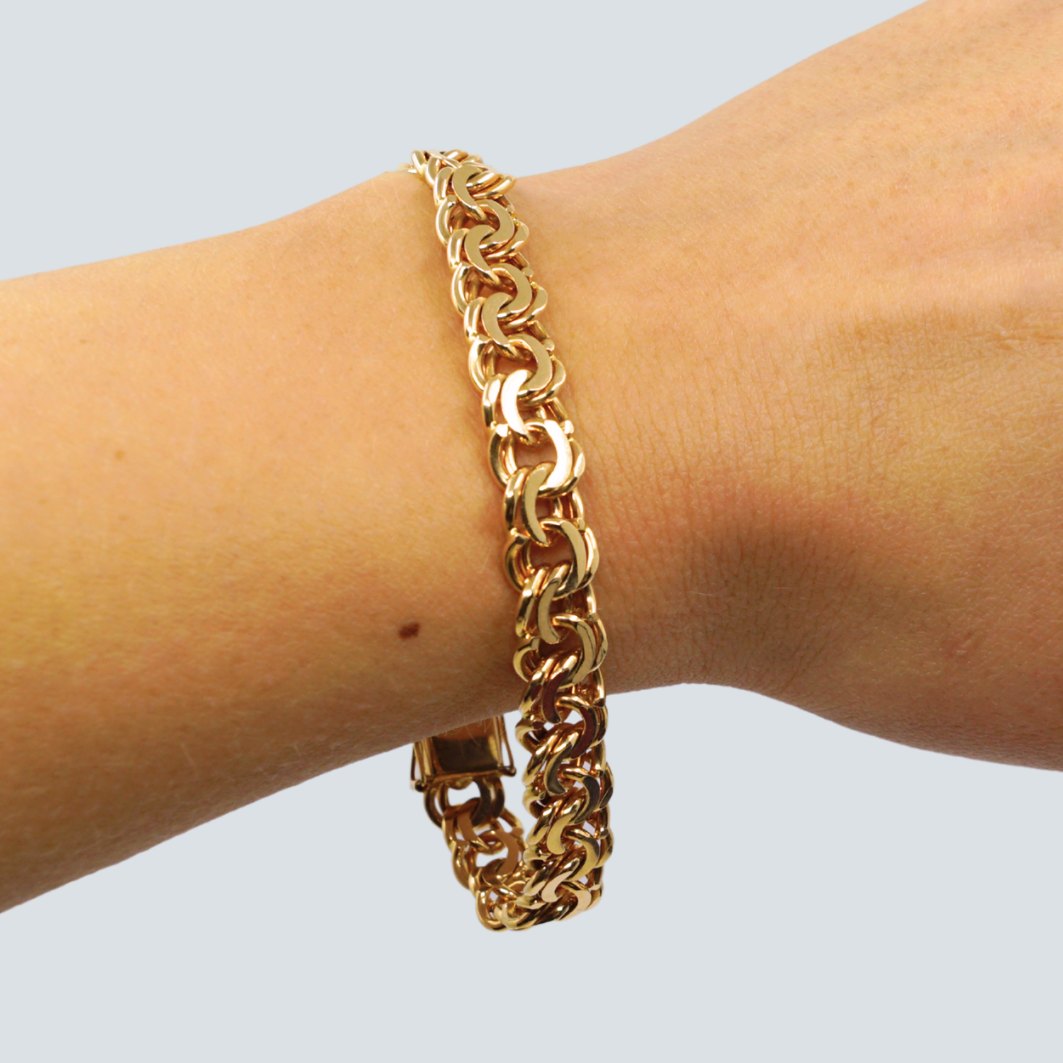 A bracelet of 14k gold. Clasp with two safety catches. L. 19,5 cm. W. 0.8 cm. Weight 25 gram.Stamped "GIFA 585".