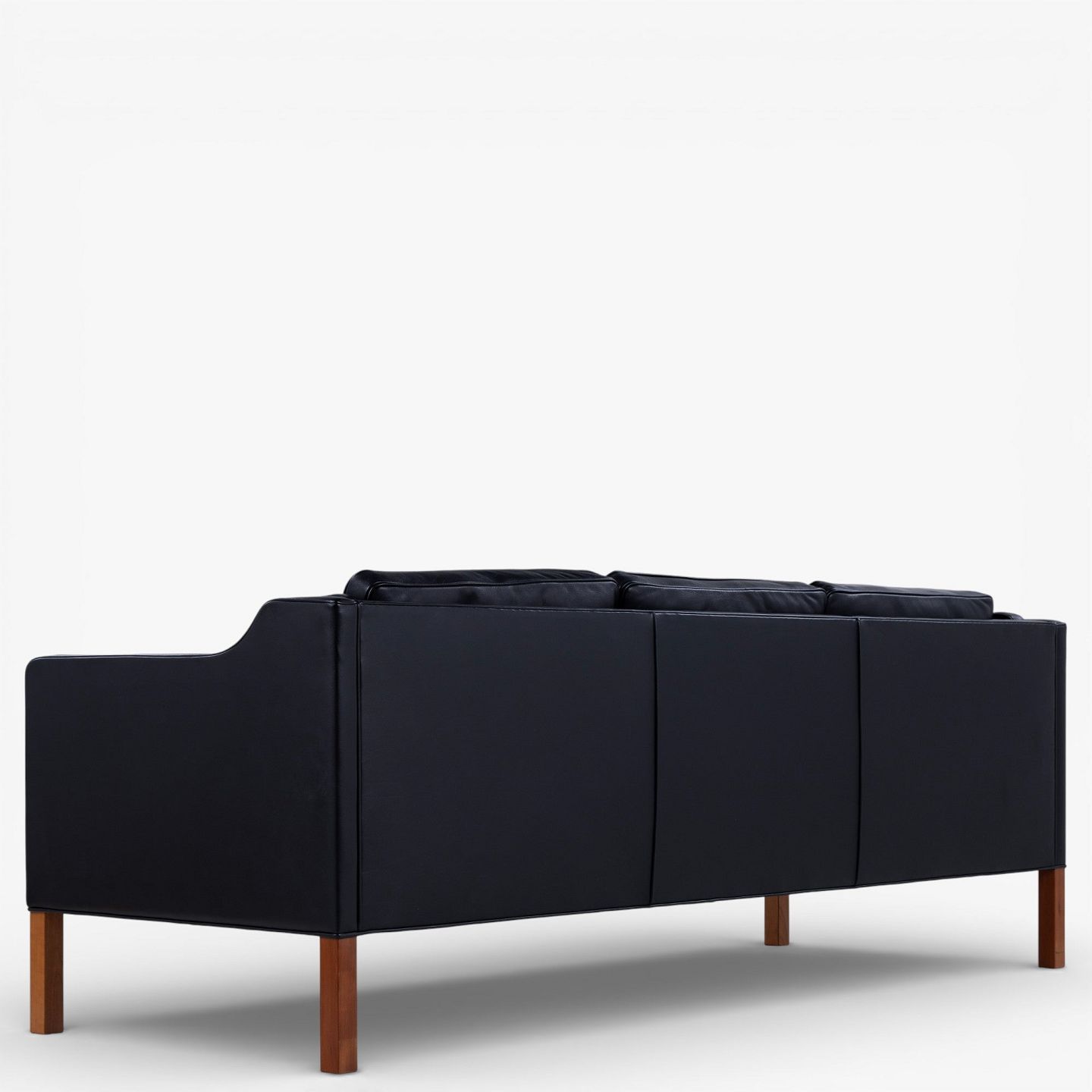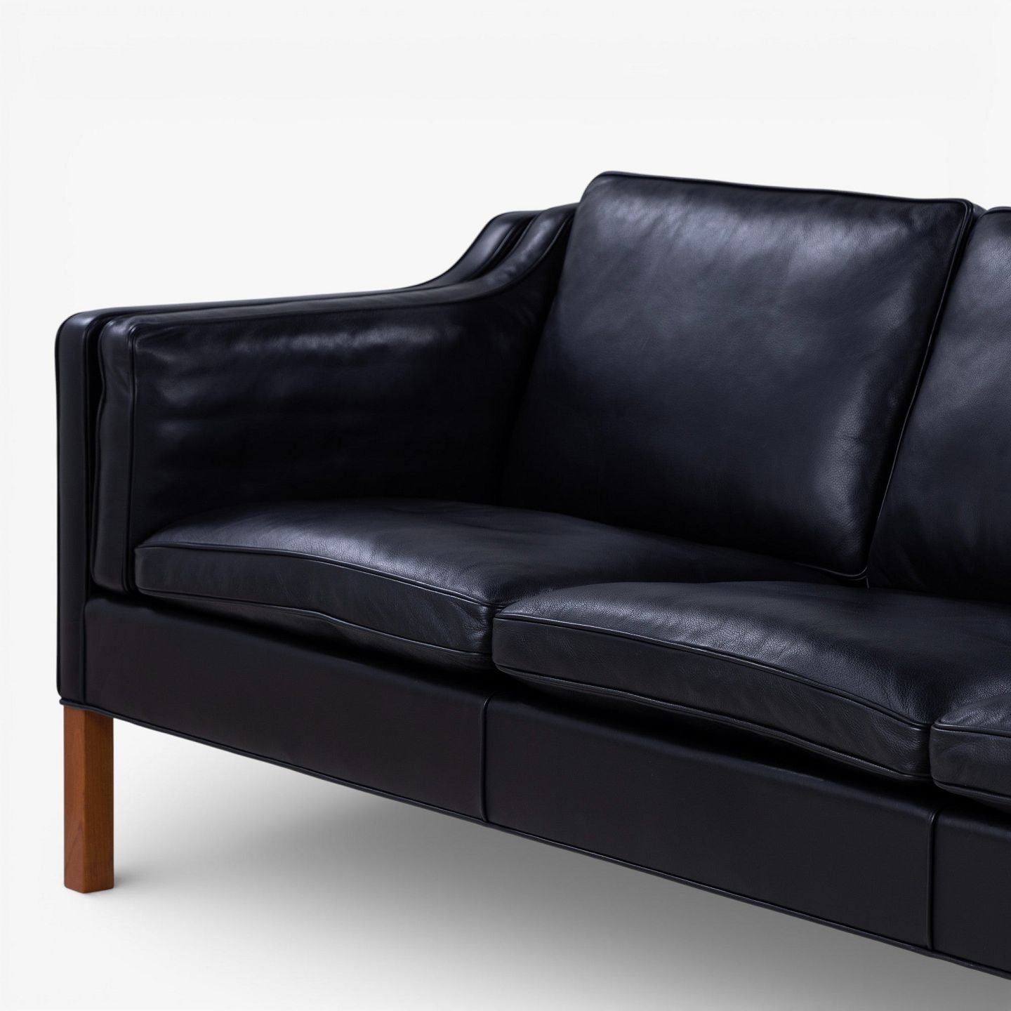 BM 2213 - 3 seater sofa in black semi-aniline leather. Manufacturer's label.