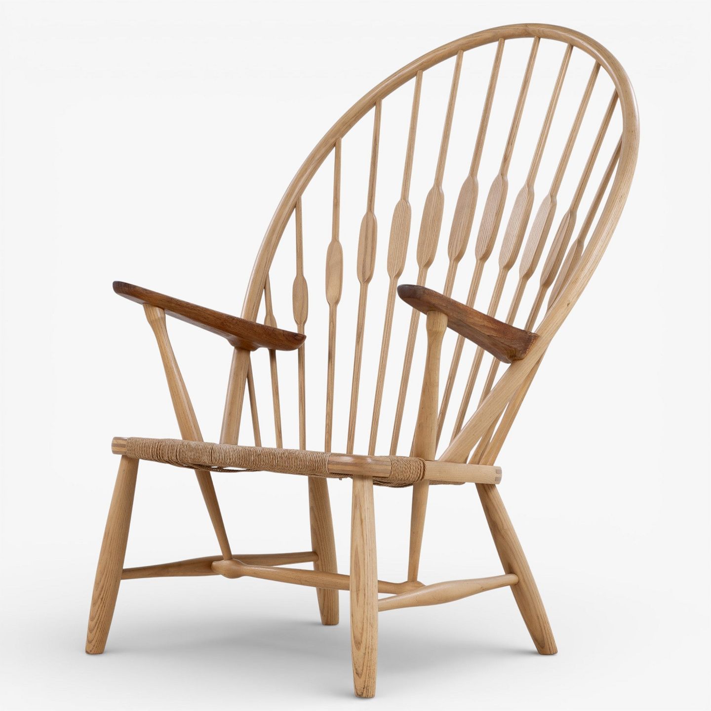 JH 550 - 'Peacock Chair' armchair in patinated ash with teak armrests and woven paper yarn seat. Branded by manufacturer.