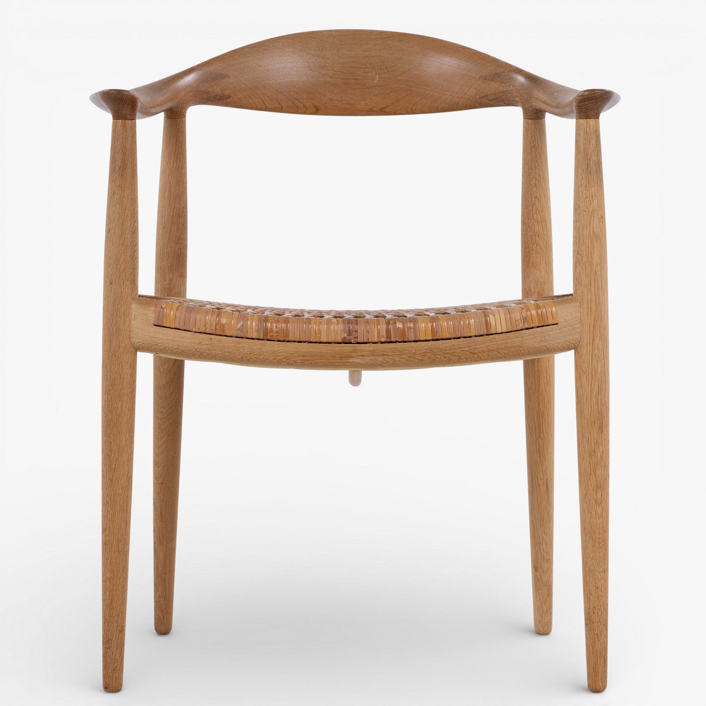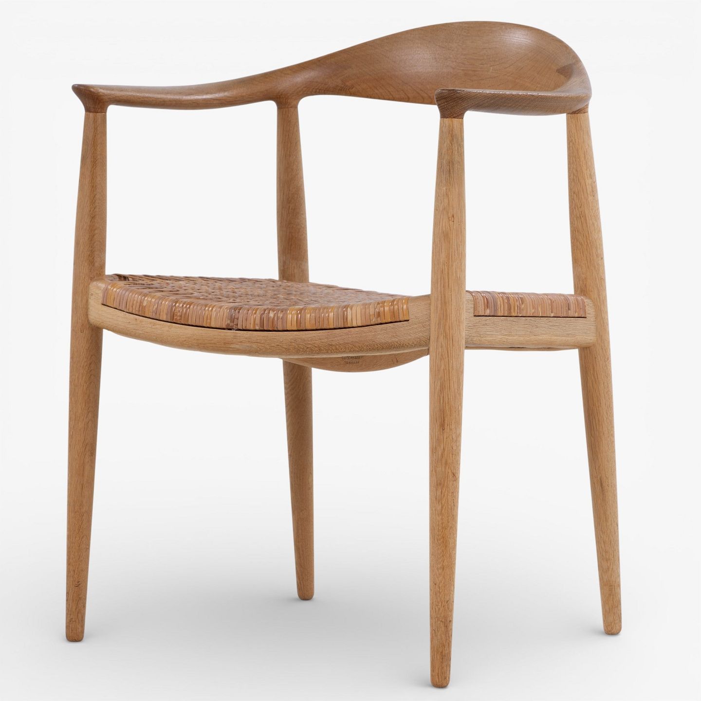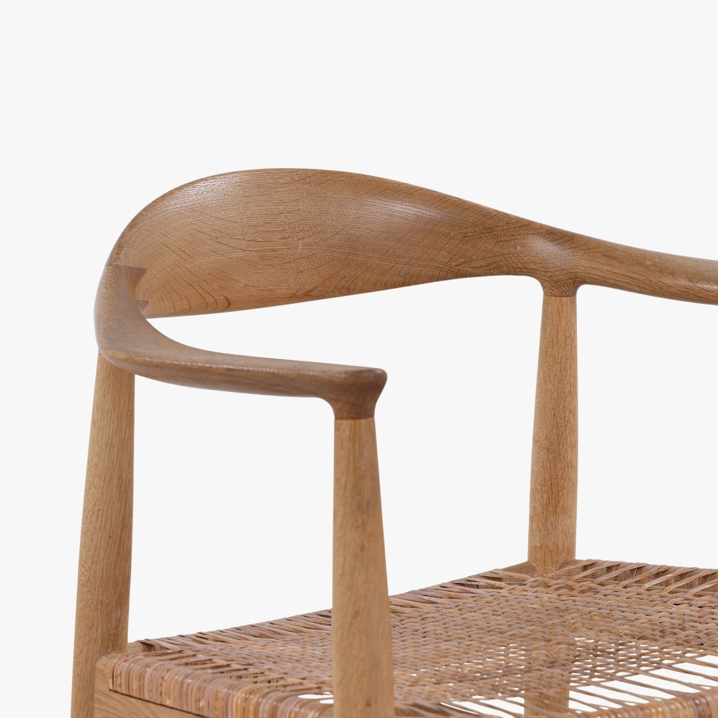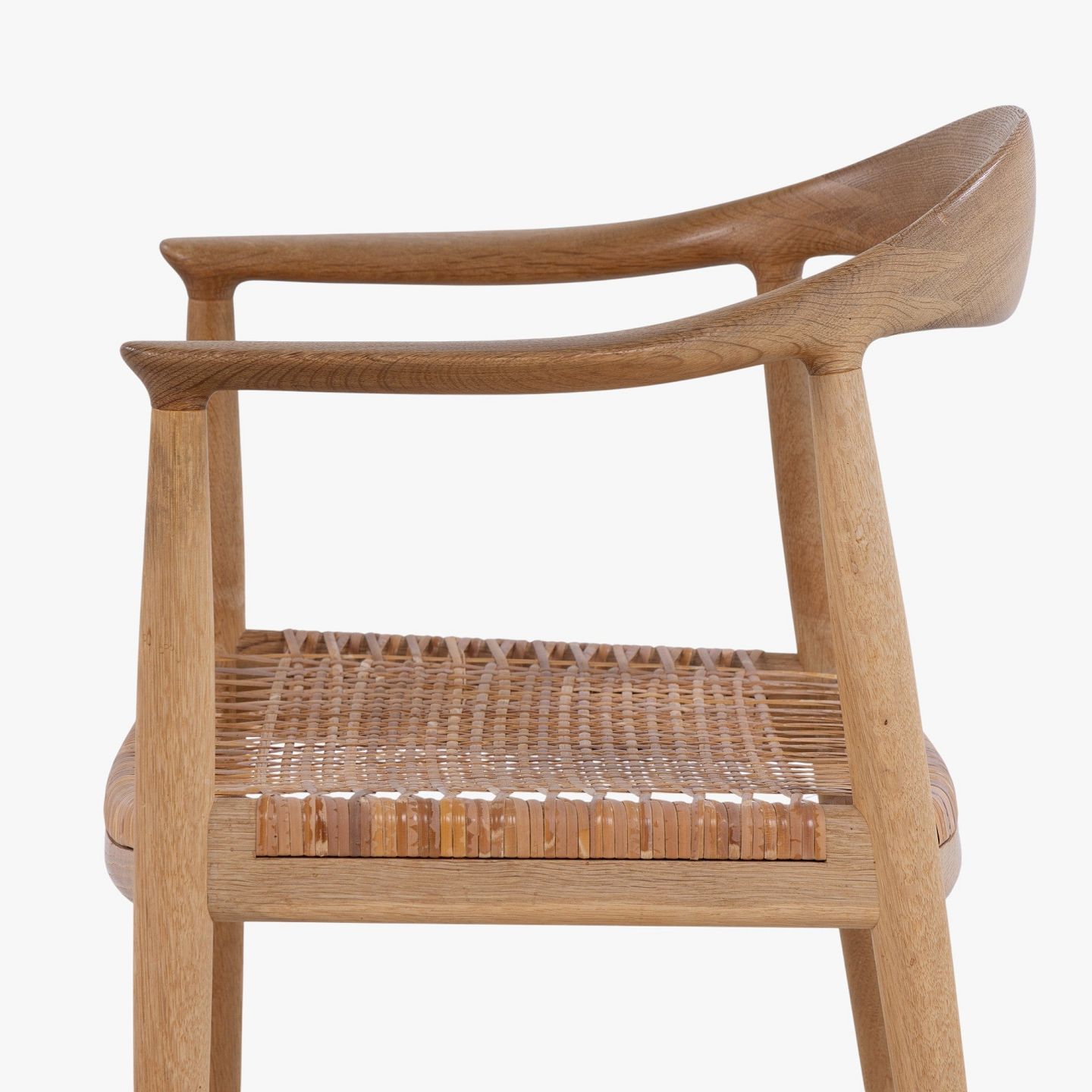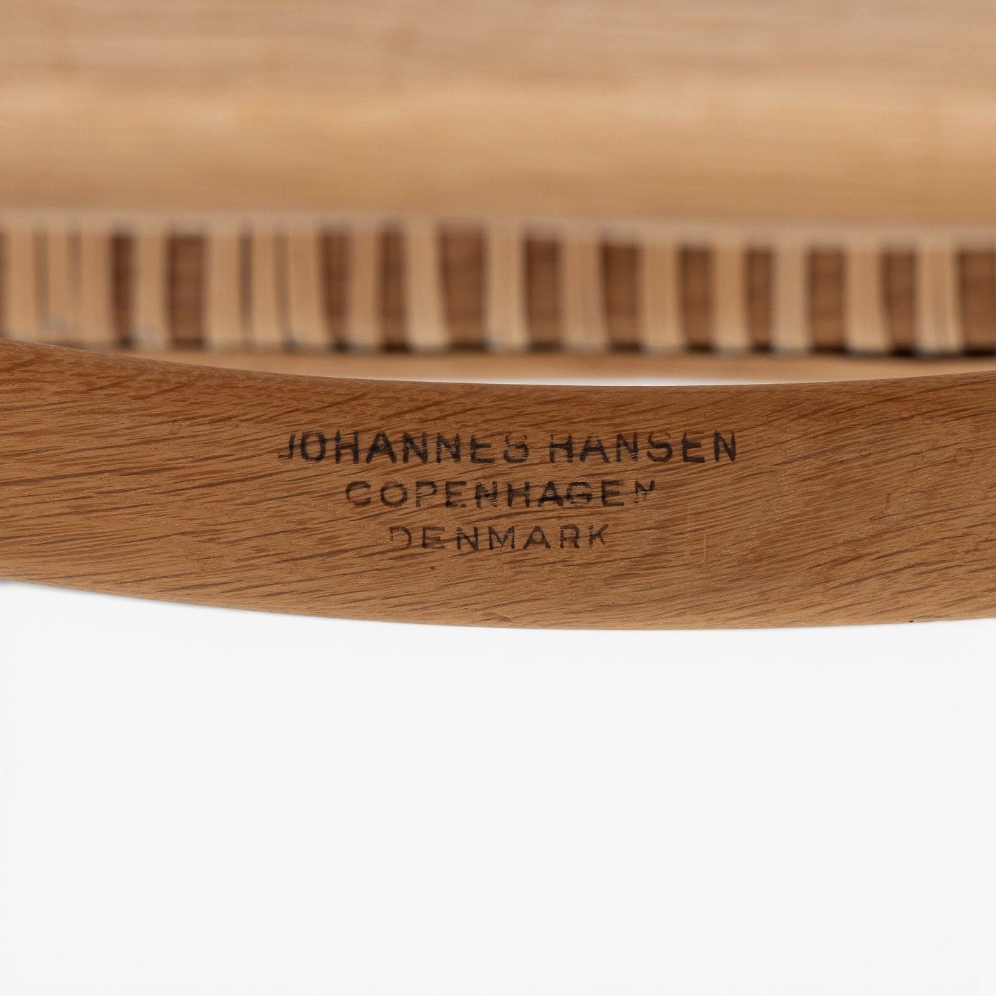 JH 501 - 'The Chair' dining chair in patinated oak with wicker seat. Branded by manufacturer.