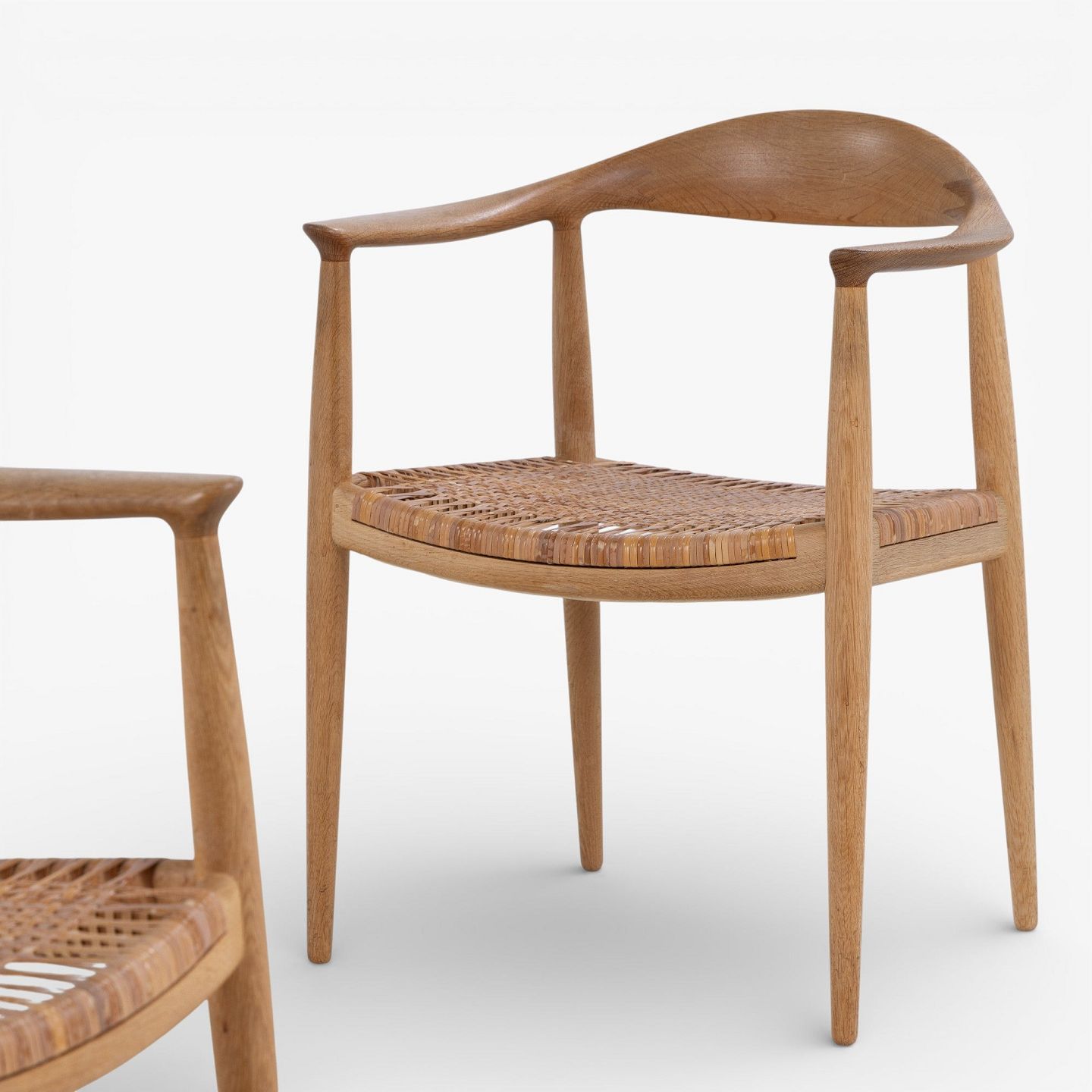 JH 501 - 'The Chair' dining chair in patinated oak with wicker seat. Branded by manufacturer.