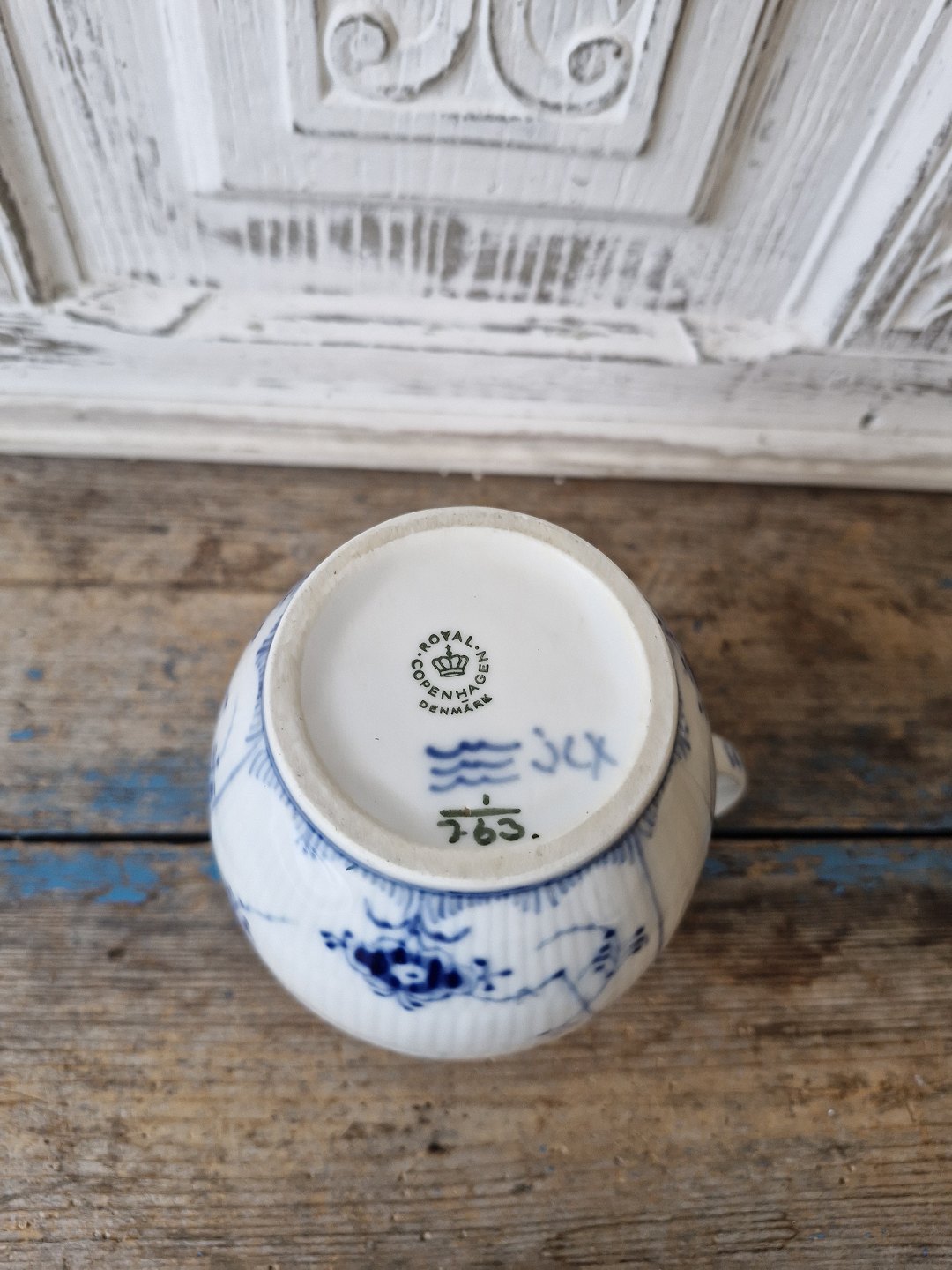 Royal Copenhagen Blue Fluted half lace milk jugNo. 763, Factory first