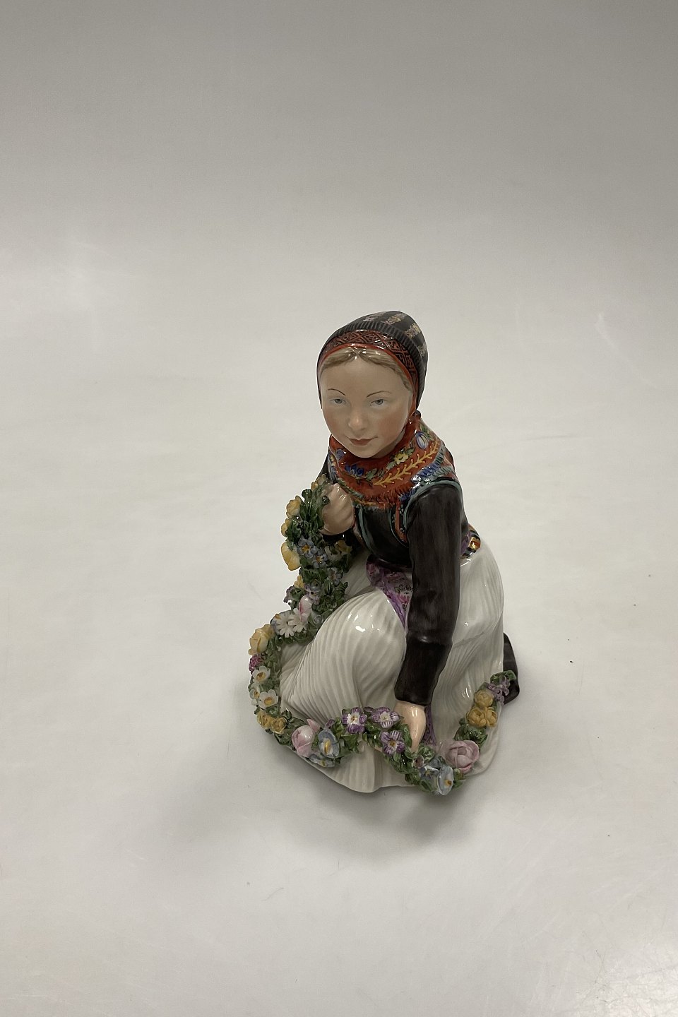 Royal Copenhagen Overglaze figurine of Amager Flower Girl No 12412.Measures 12,5cm / 5".
