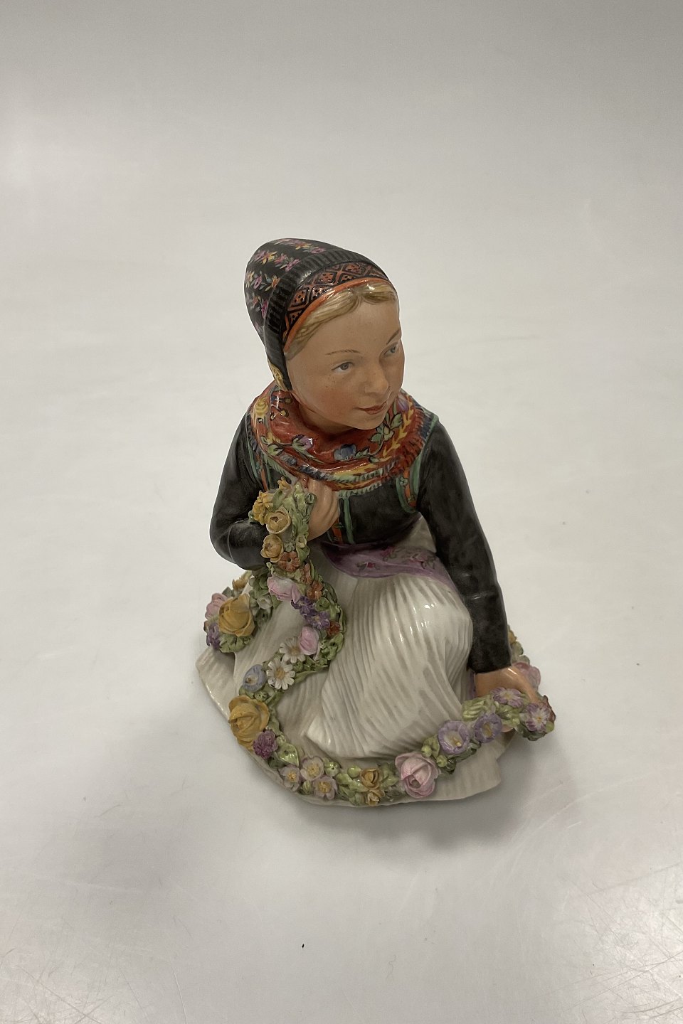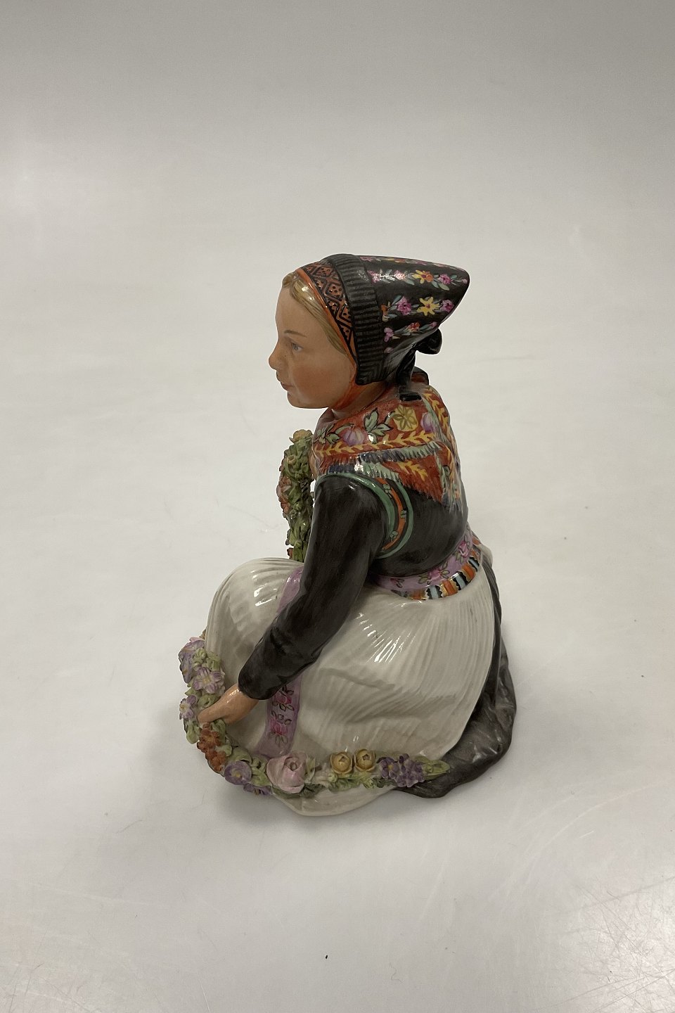 Royal Copenhagen Overglaze figurine of Amager Flower Girl No 12412.