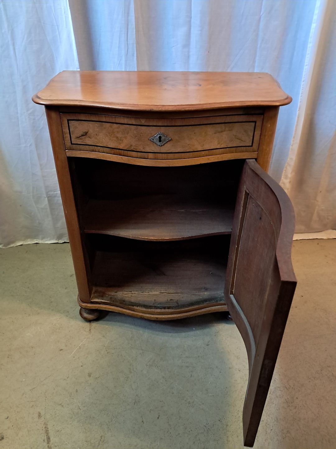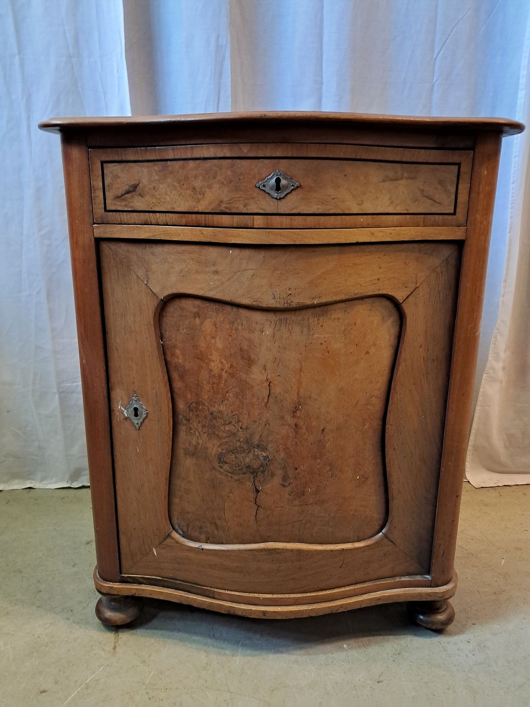 Konsolskab i fineret mahogni, fra 1910erne.Det har brugsspor.