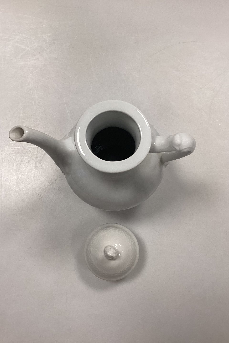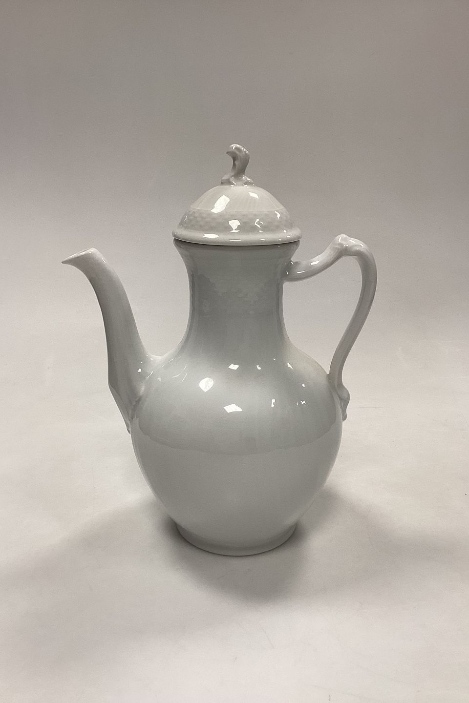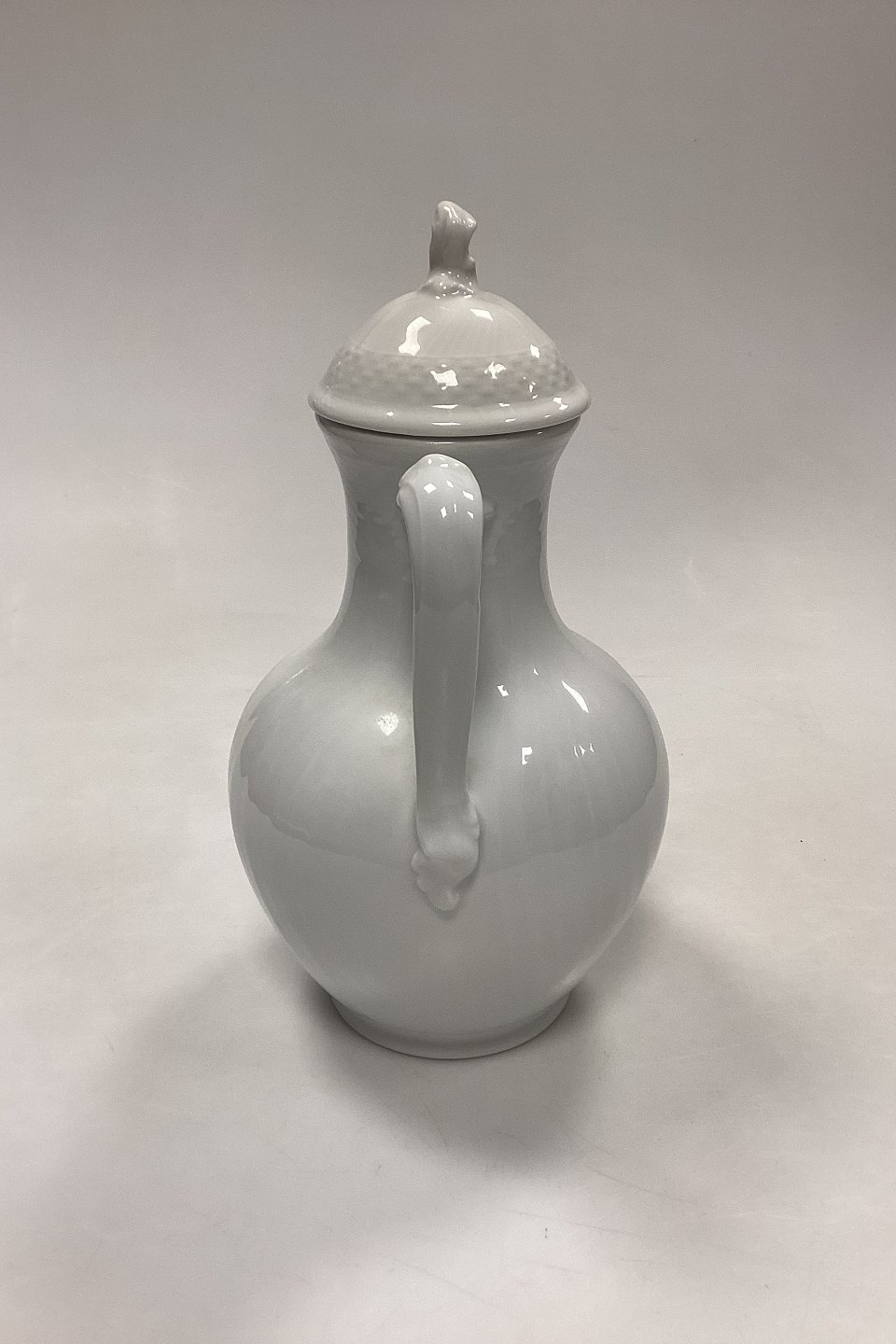 Royal Copenhagen Josephine, White Curved Coffee Pot No. 128 with lid No. 127. 1st Quality.Measures 25 cm / 9.84 in.