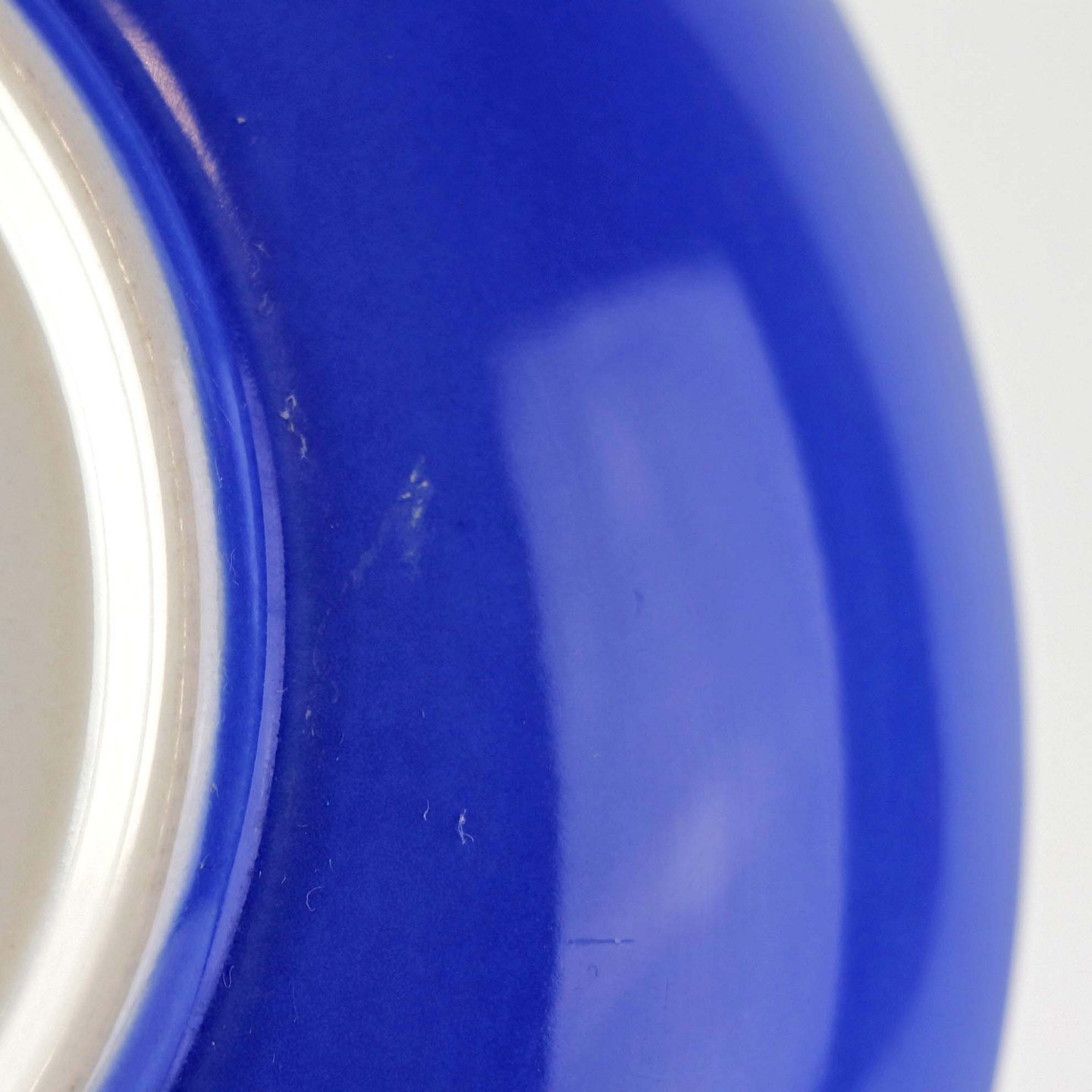 Fremstår med ridser på bagsiden, mindre mørk plet under glasuren.