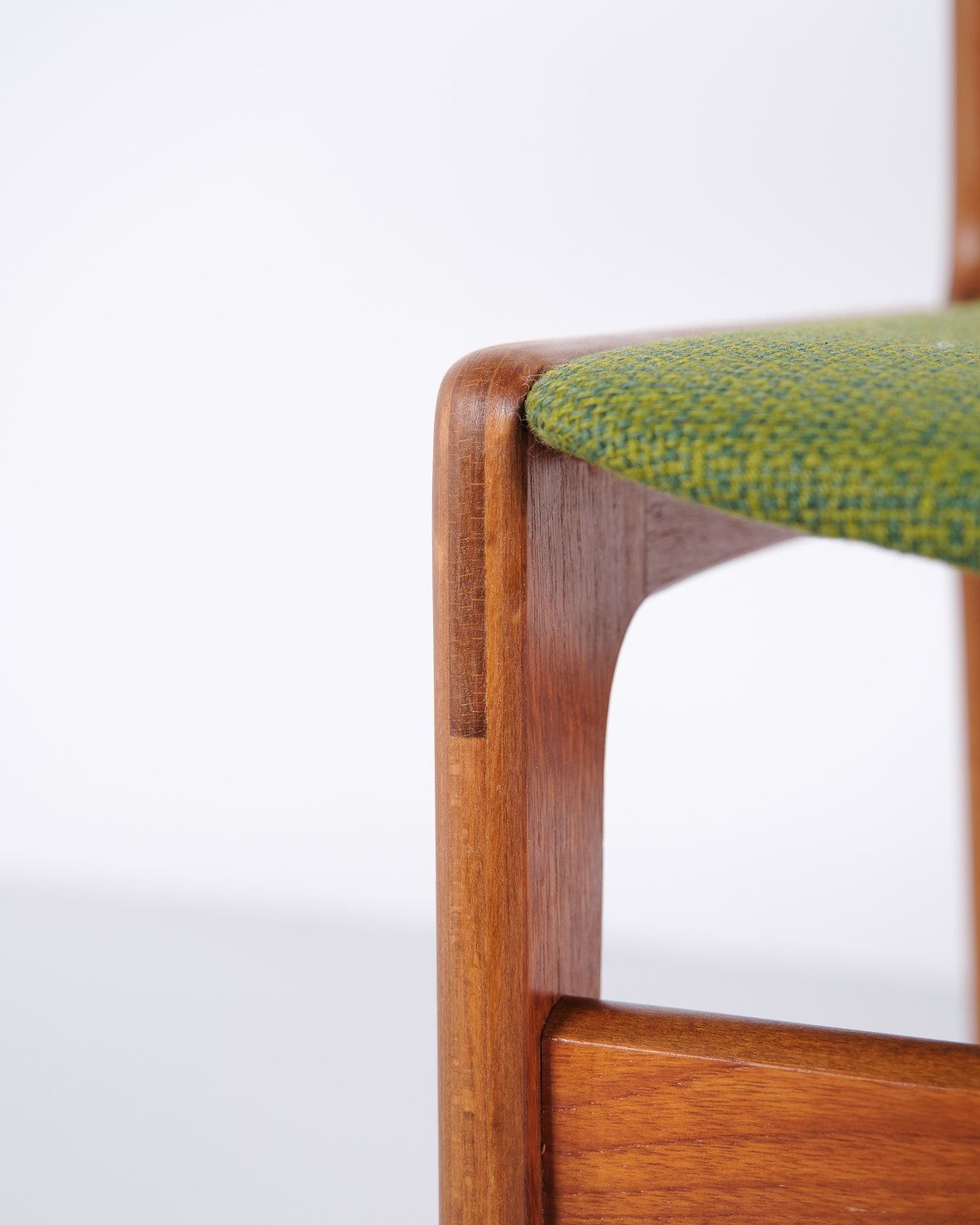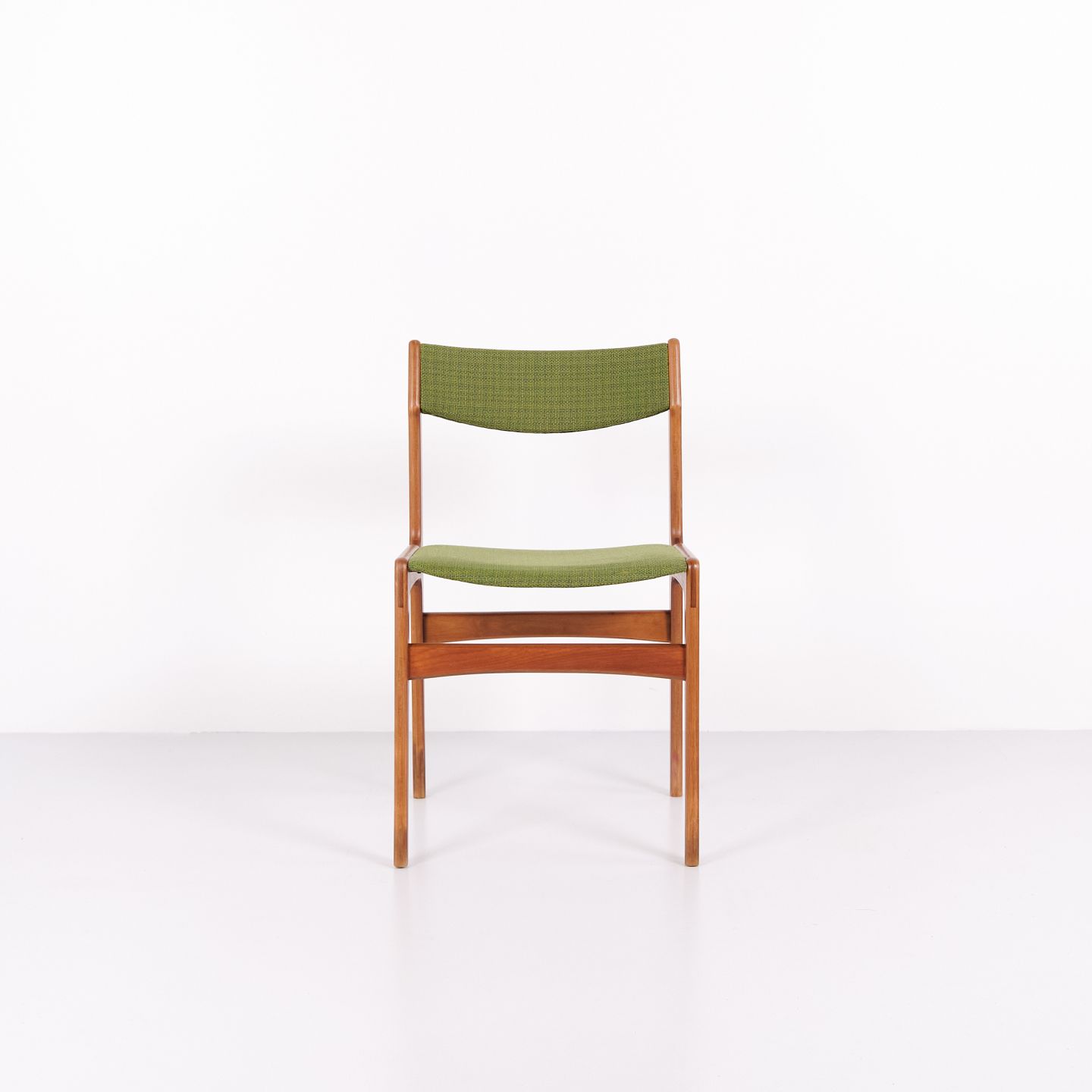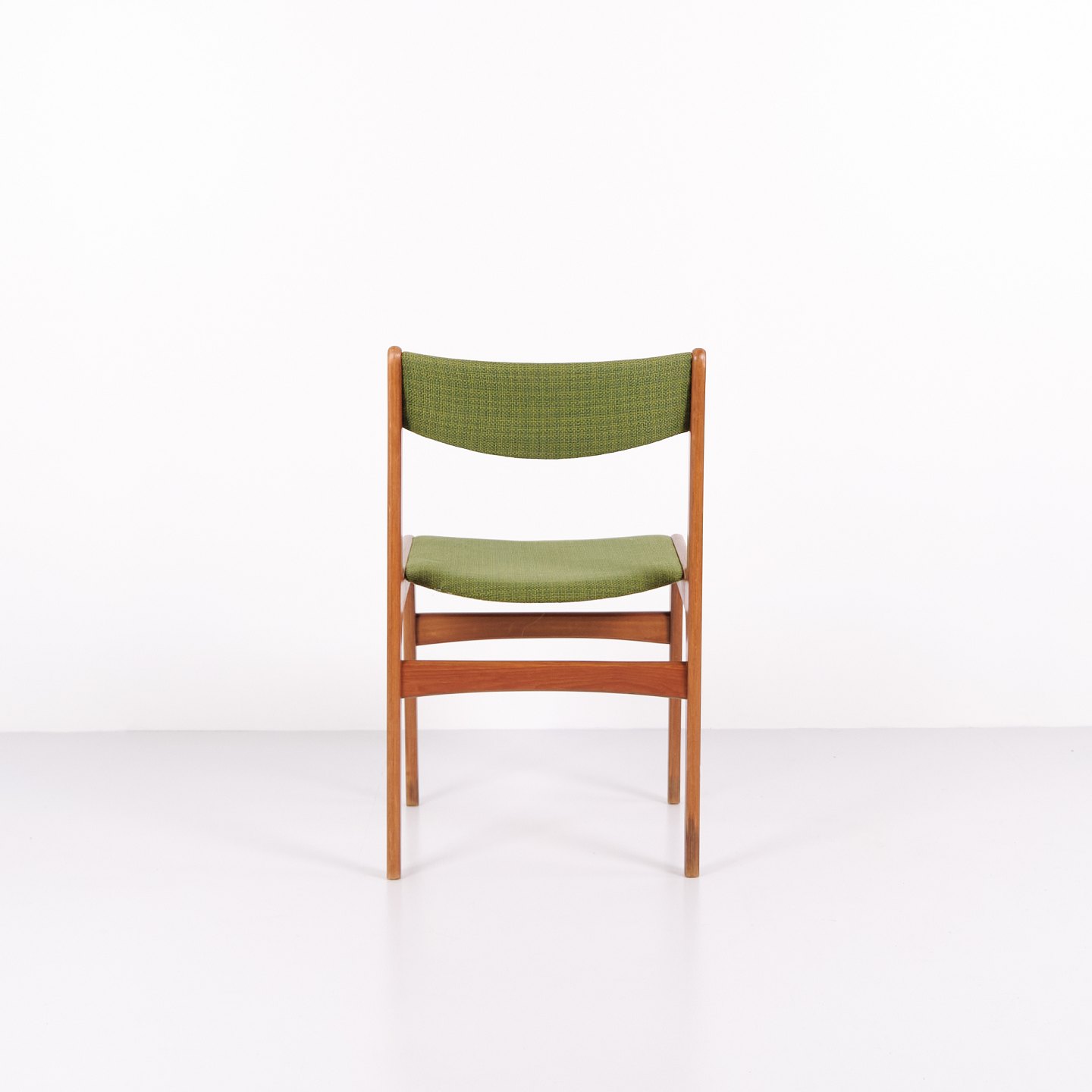 Erik Buch dining chair from the 1960s in teak and green fabric. Classic Danish design.— Origin: Denmark