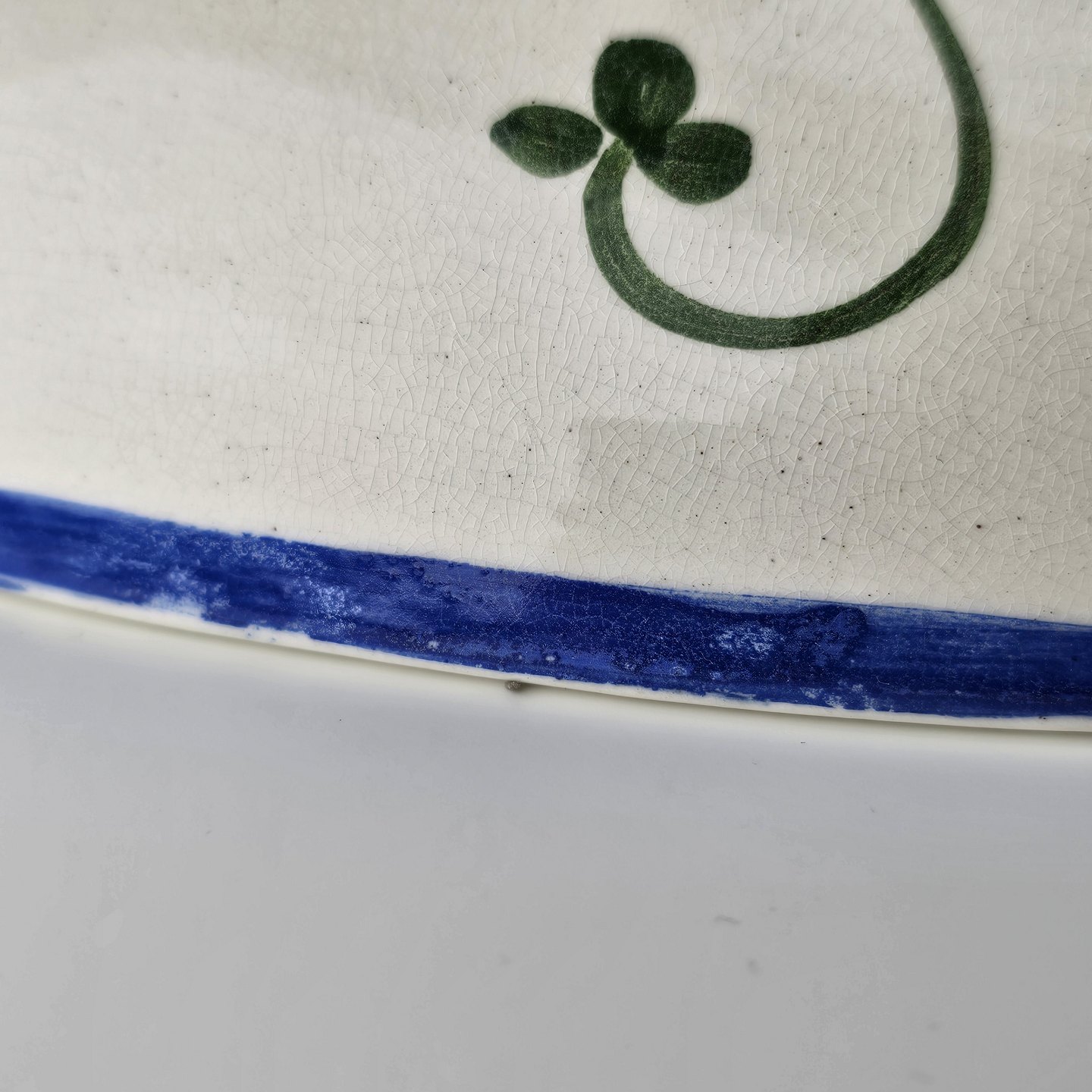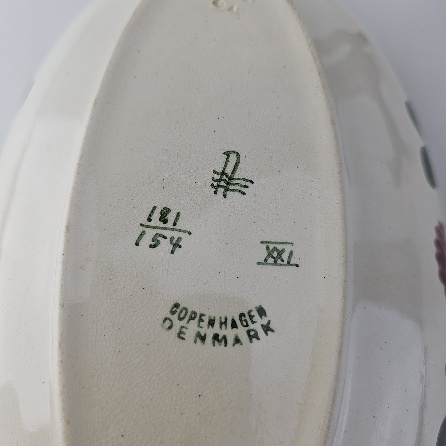 Lågfad i kunstfajance fra stellet Kløver. Nr. 181/154Formgiver H. Slott-Møller år 1904