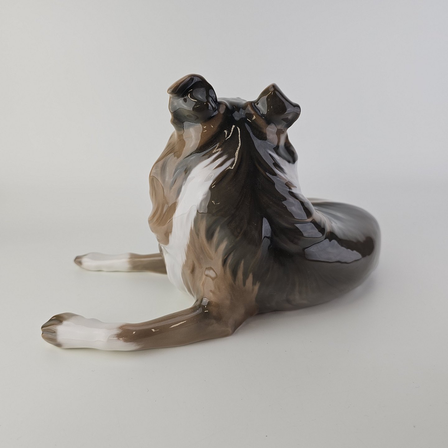 Figur i hvidt porcelæn med motiv af en liggende hund. Nr. 1663