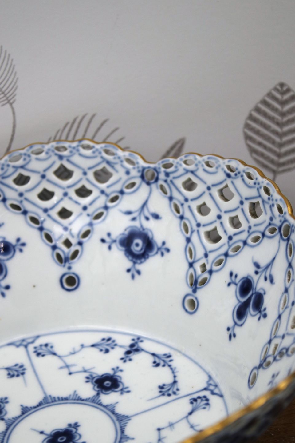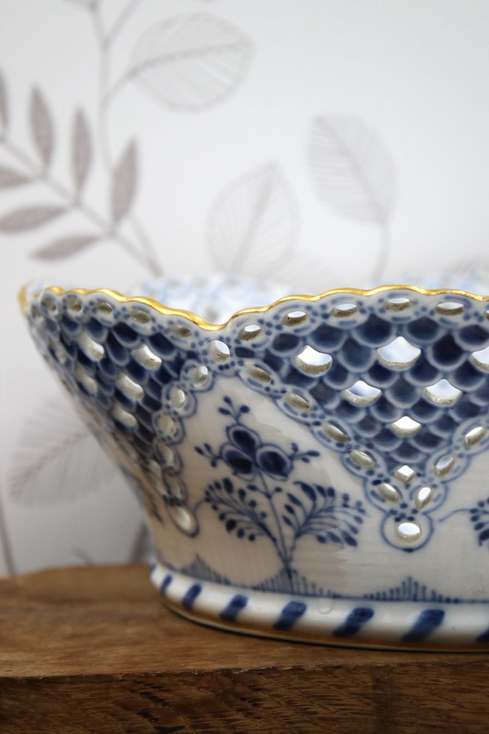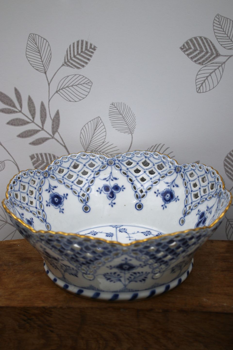 Antique Blue Fluted fruit bowl with openwork edge and gold rim.Height: 9cm. Dia.: 23m. Decoration number: 1/1061. 1st variety.
