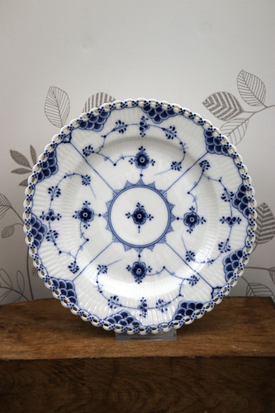 Antique Royal Copenhagen small Blue Fluted Full Lace Dinner PlateDia: 23cm. Decoration number: 1/1085. 2.sort.