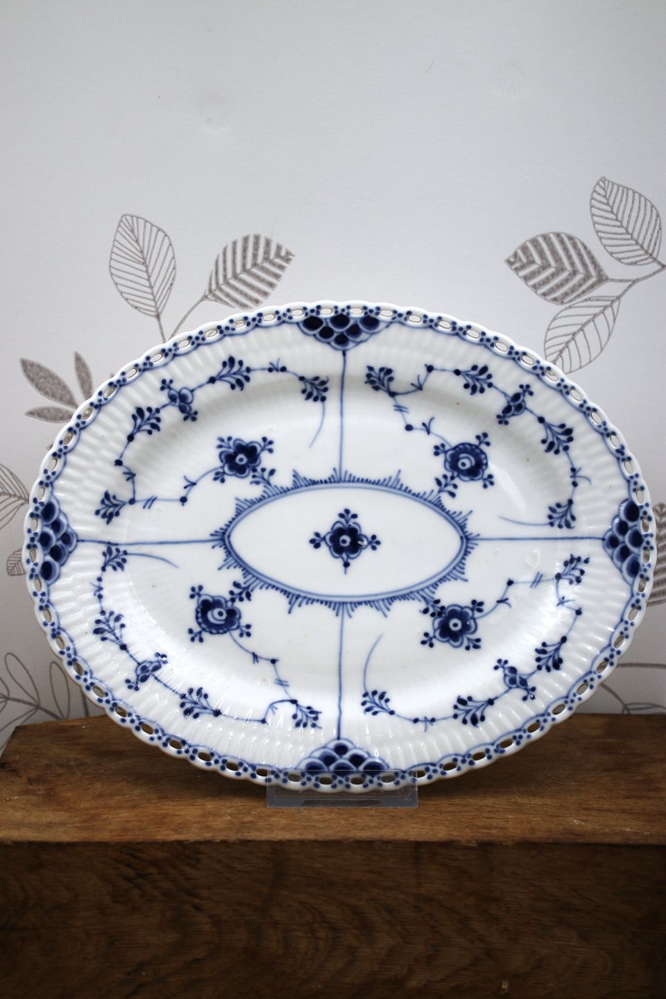 Antique Royal Copenhagen Blue Fluted Full Lace Oval Dish.26x20cm. Decoration number: 1/1146. 2.sort. From the year 1898-1923. (2 pieces in stock) Is intact and in fine condition.