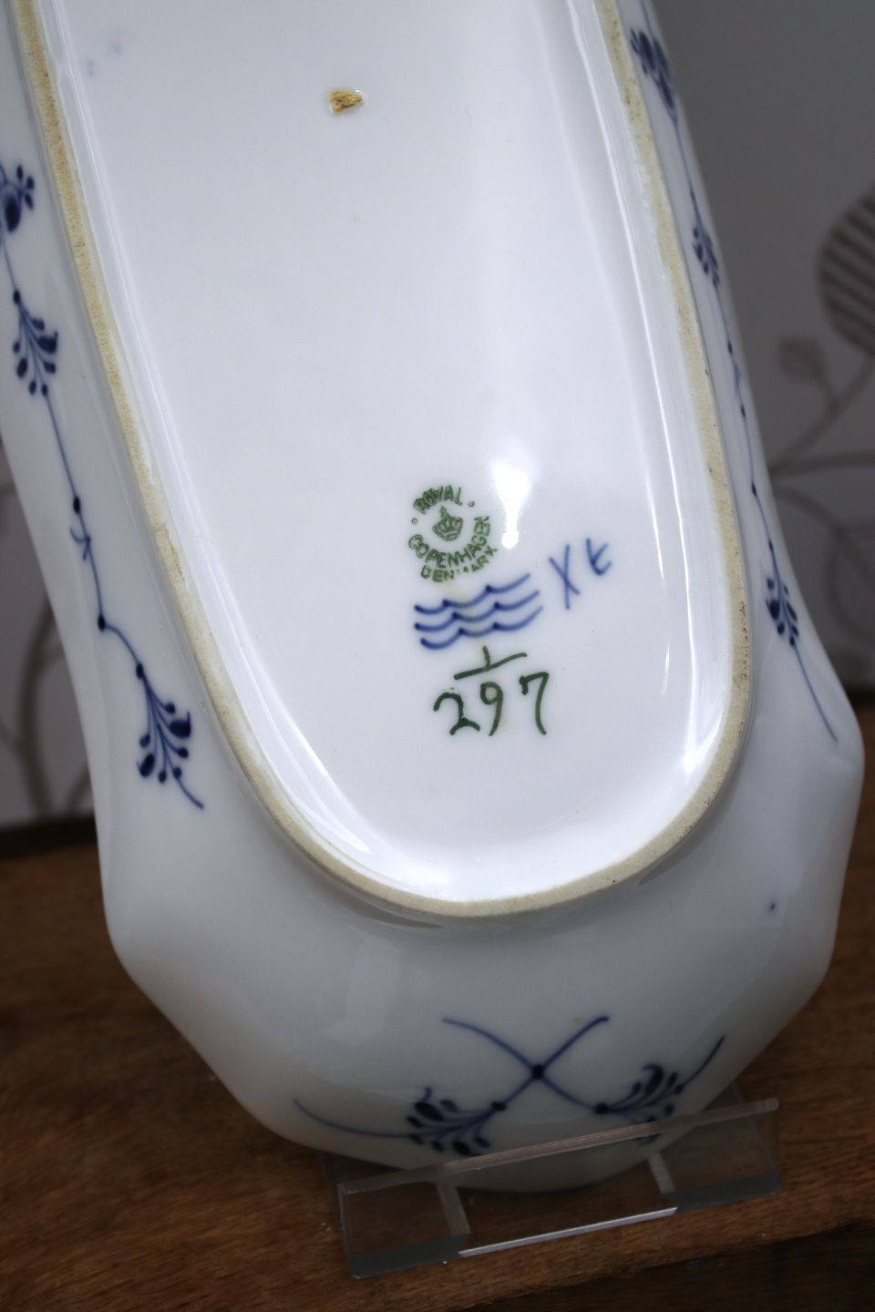 Royal Copenhagen, Blue Fluted Plain Celery Dish.Decoration number: 1/297. 2.sort. 1923-28.