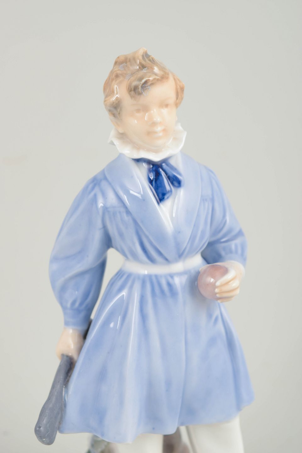 Rare Royal Copenhagen figurine 1828, boy with ball and bat.Porcelain figurine depicting a standing boy holding a ball and bat in his hands. Hand-painted glaze decoration in muted colors. Model 1828. First quality. Manufactured in the 1920s. Designed by Christian Thomsen in 1916.