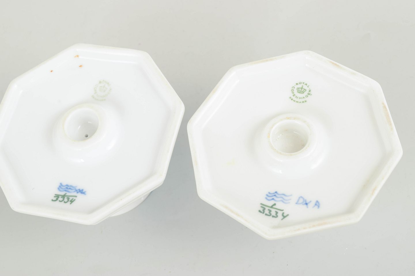 One is first factory quality and the other is cancelled with one incised line on the base.