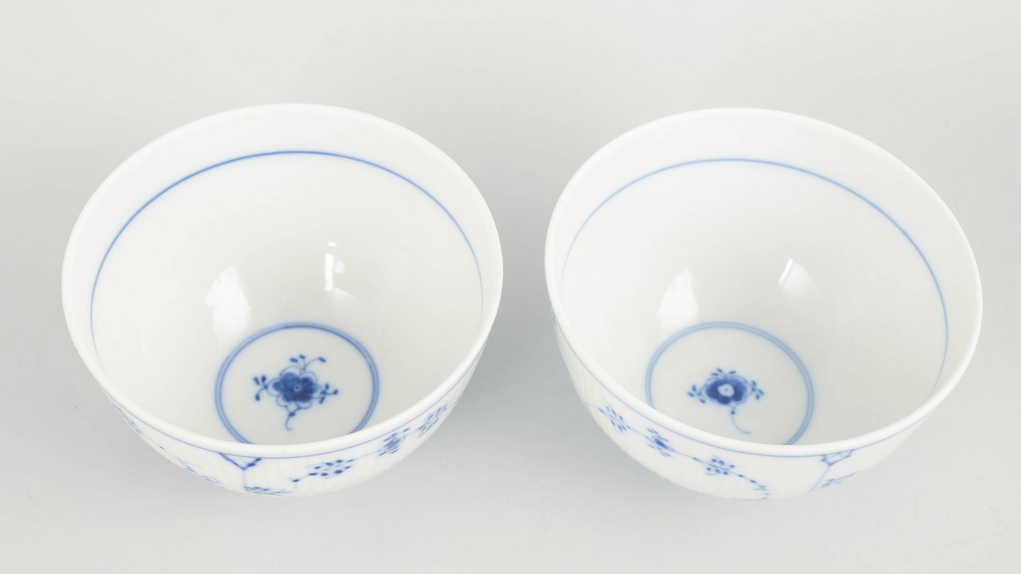 Royal Copenhagen Blue Fluted Plain set of two bowls.Set of two bowls in hand-painted porcelain from the Blue Fluted Plain service with classic underglaze cobalt blue decoration and fluted surfaces. Model 1/209. H. 7 cm, D. 12 cm. First factory quality. Produced in the 1980s.