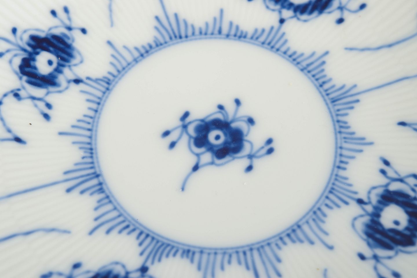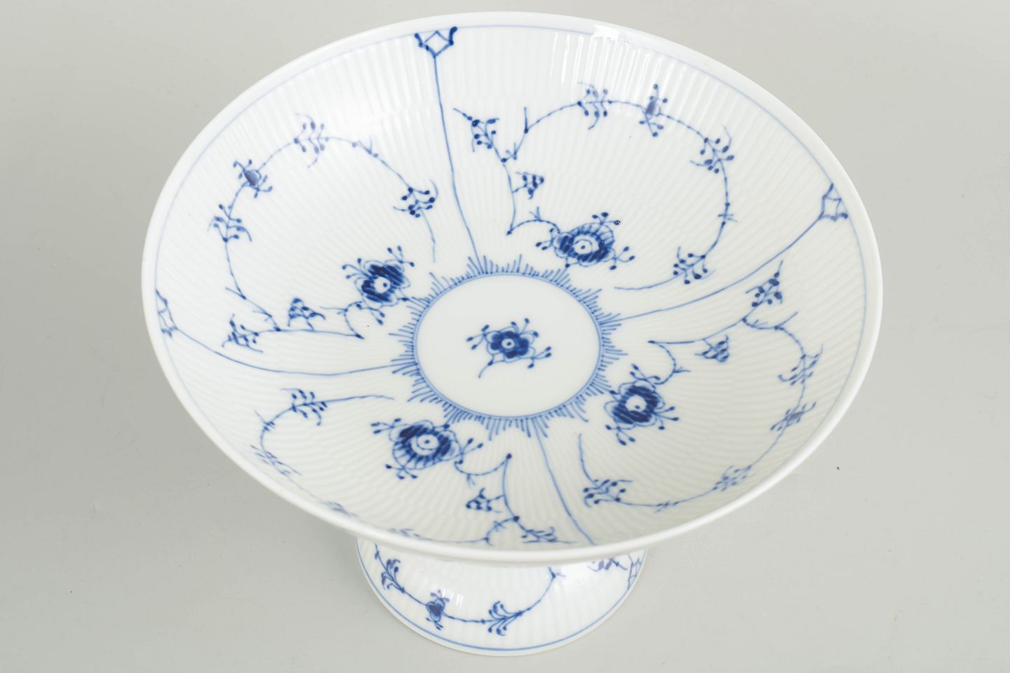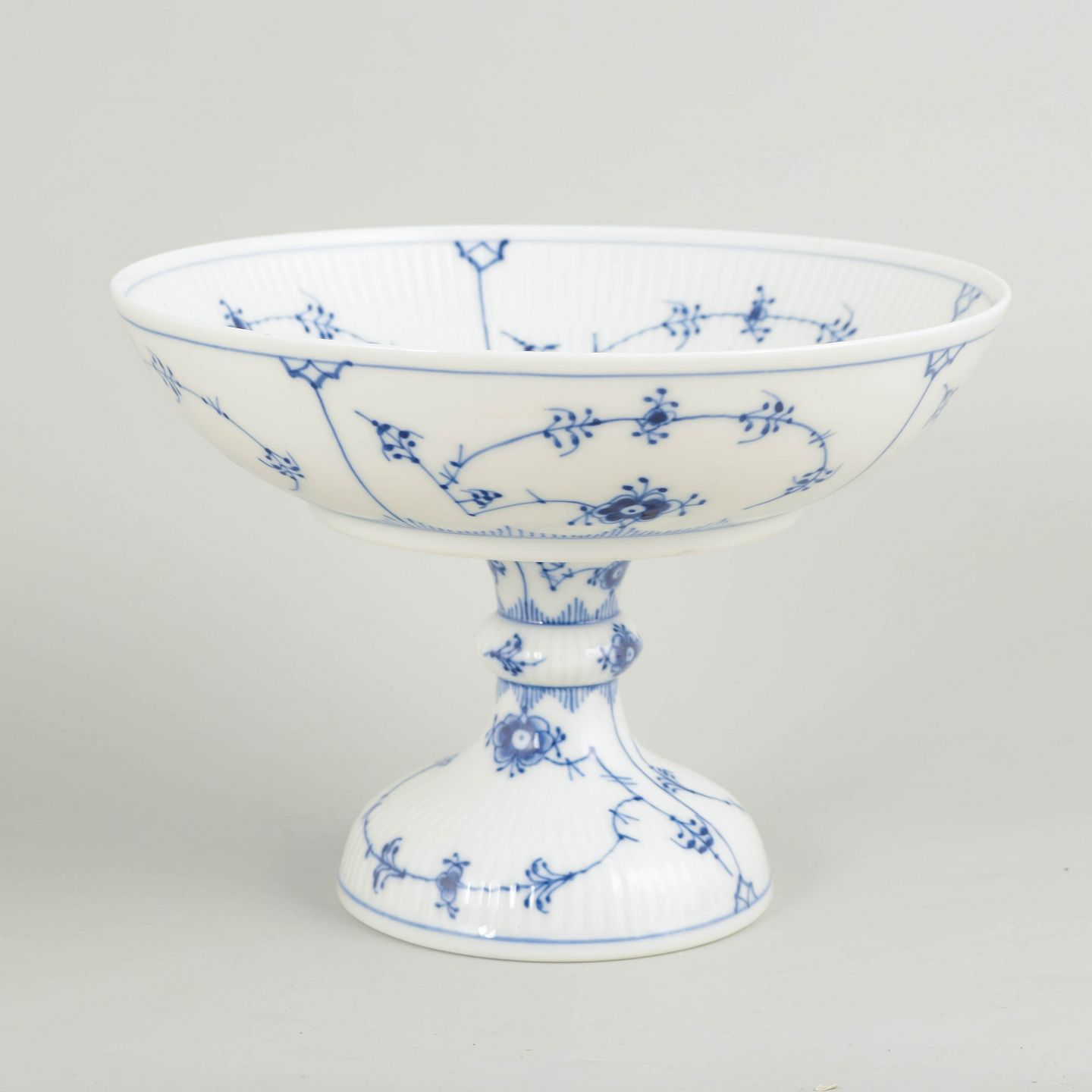 Royal Copenhagen Blue Fluted Plain compote.Compote in hand-painted porcelain from the Blue Fluted Plain service with classic underglaze cobalt blue decoration and fluted surfaces. Model 1/22. Cancelled with one incised line on the base.