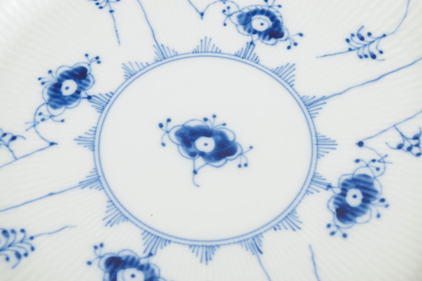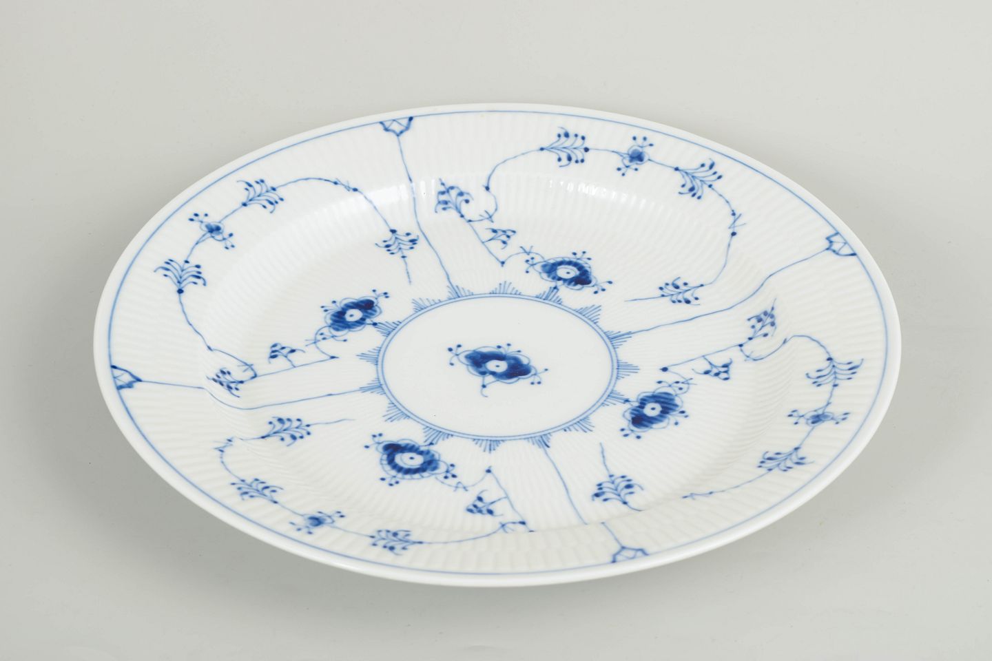 Royal Copenhagen Blue Fluted Plain large round platter.Large round platter in hand-painted porcelain from the Blue Fluted Plain service with classic underglaze cobalt blue decoration and fluted surfaces. Model 1/107. H. 4 cm, D. 33 cm. First factory quality. Produced in the 1980s.