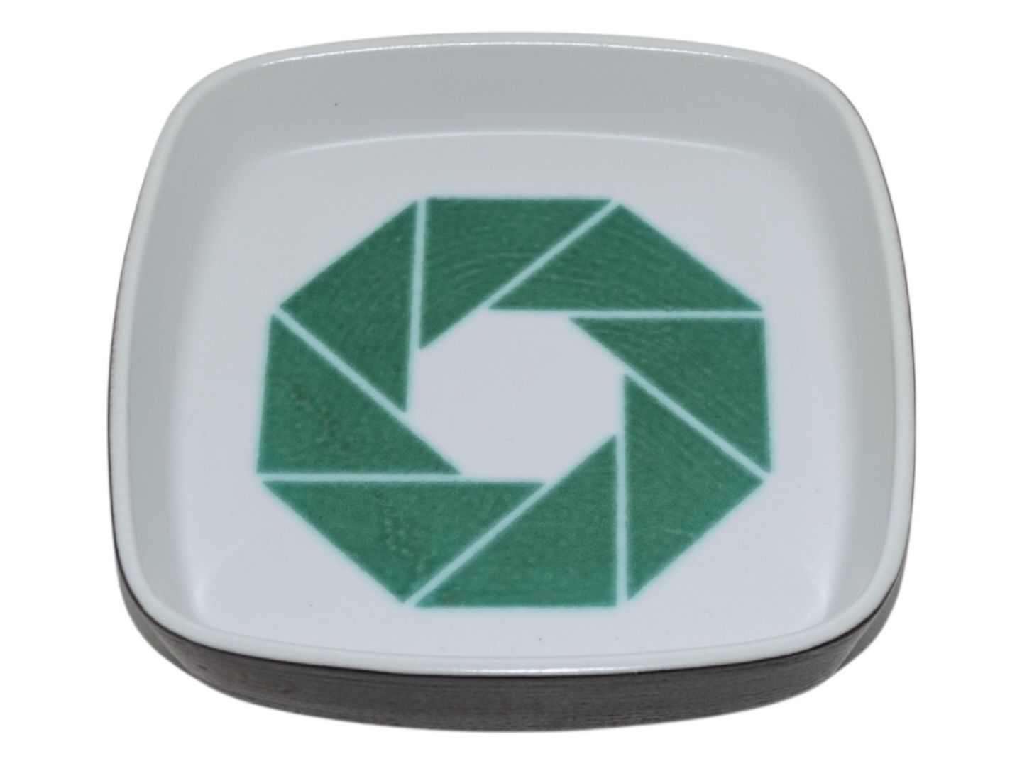 Square dish with green logo