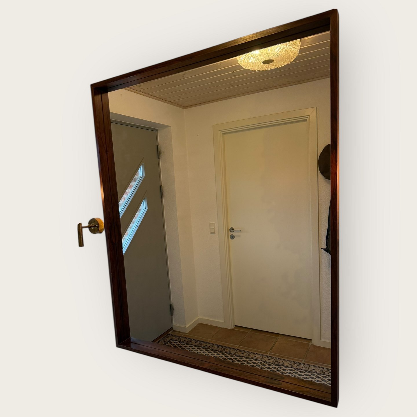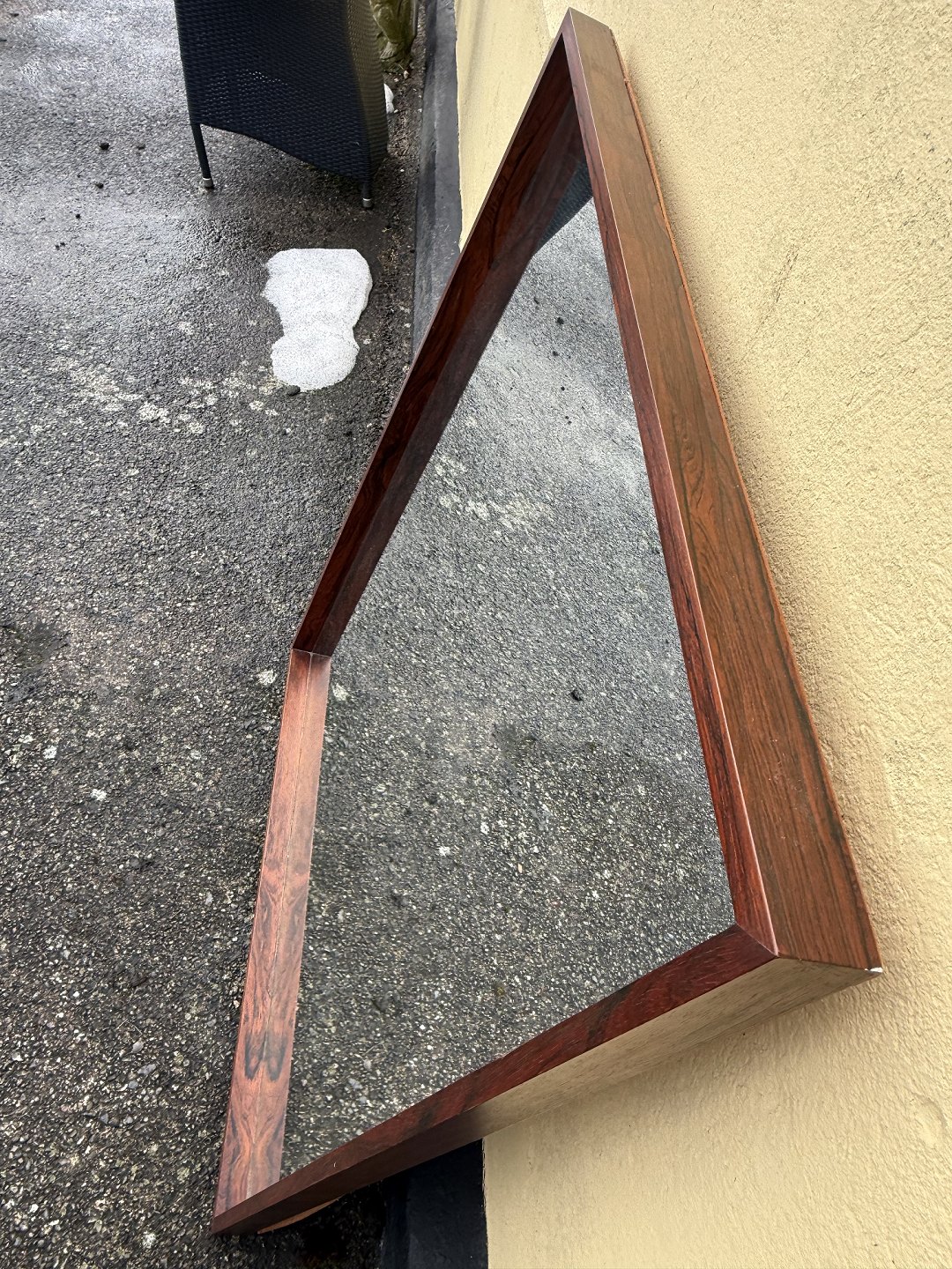 Large rosewood mirror with a strong frame. Has been in the hallway set together with the sideboard item no. 632824, Discontinued and marked from Illums Bolighus, Dimensions: 100x123cm *Excellent condition*Stock: 1