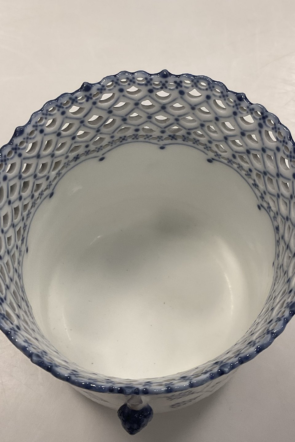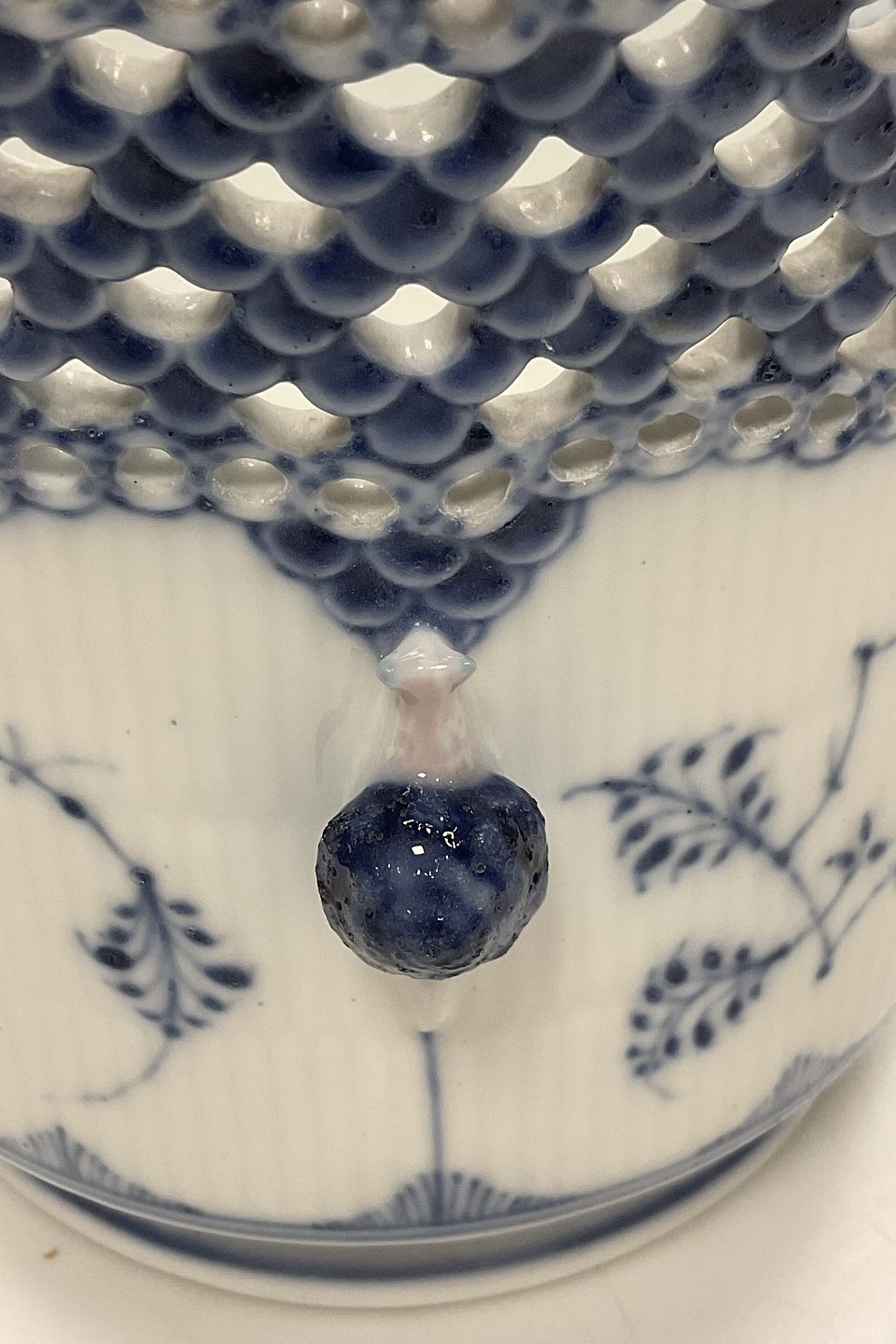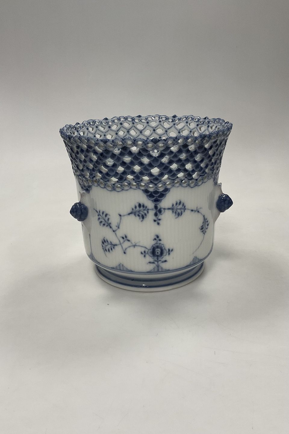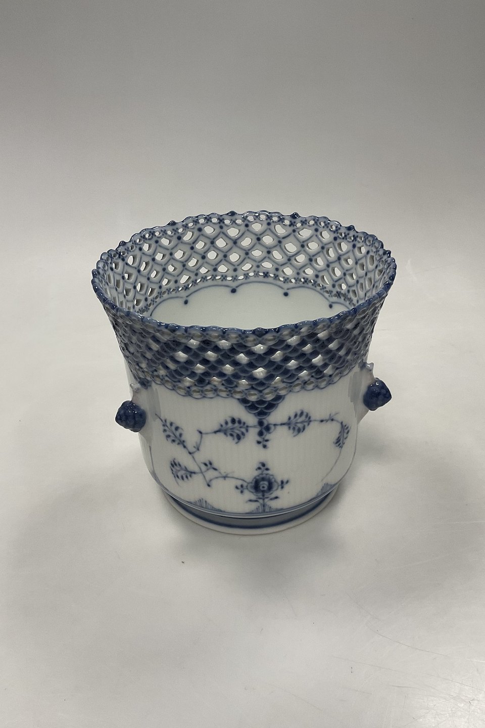 Antique Royal Copenhagen Blue Fluted Full Lace Wine cooler / Vase No 1047Measures 16,2cm høj og 16,5cm dia ( 6.38 inch x 6.50 inch )