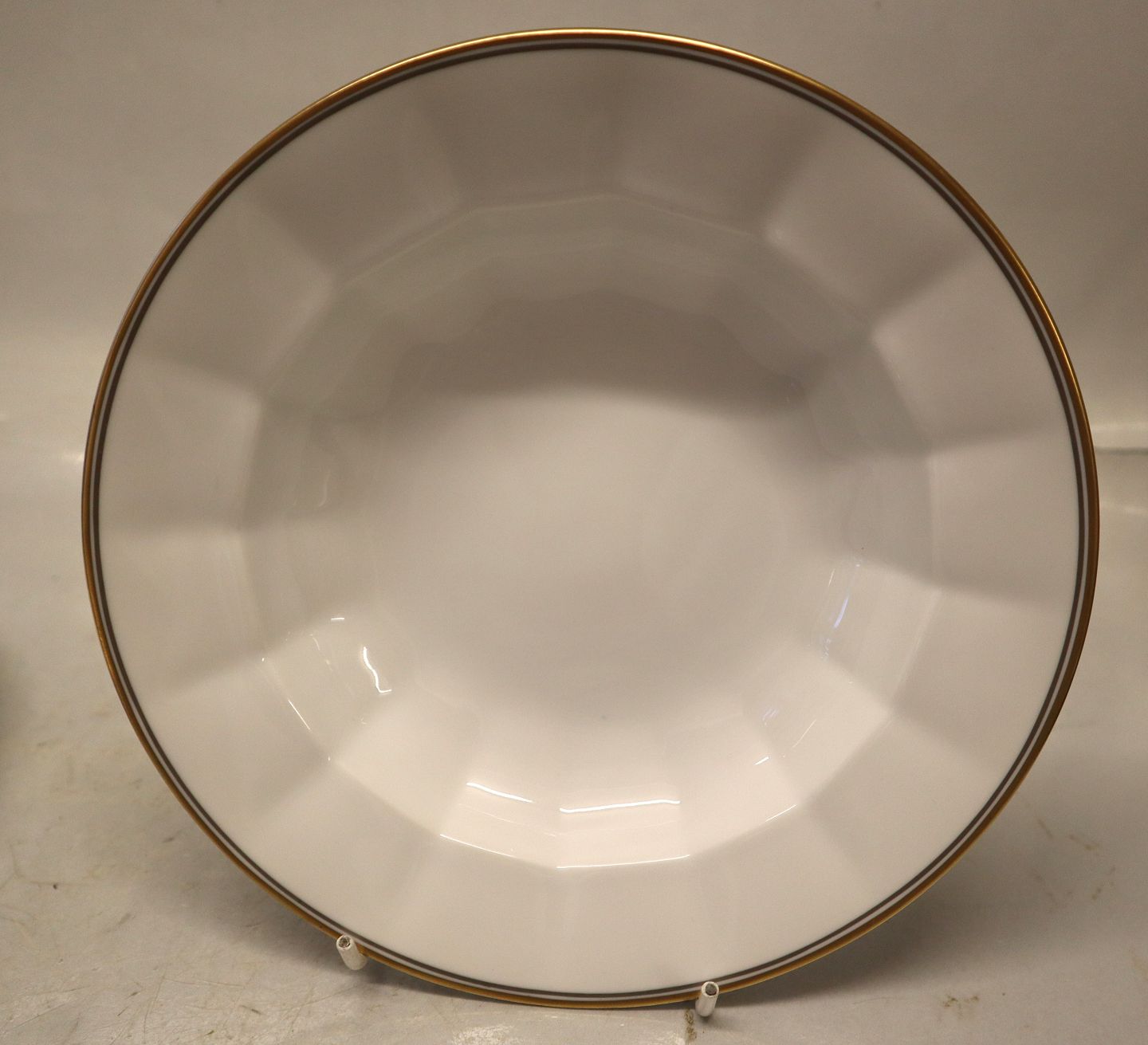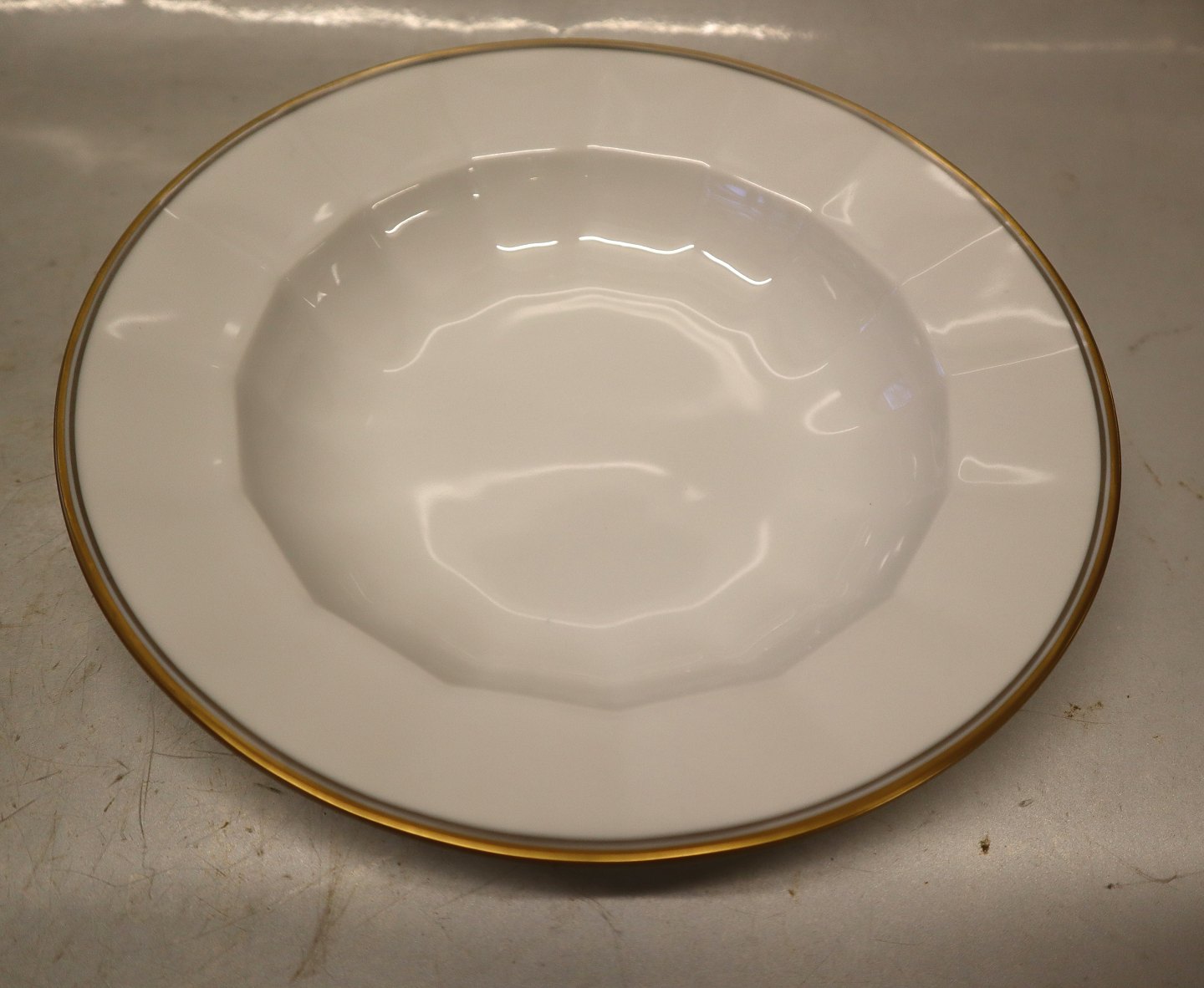 12 pcs in stock8547-1535 Small rim soup plate ca 21,2 cm (604) gold & grey lines Royal Copenhagen Palace (Palads) Angular. In mint and nice used condition