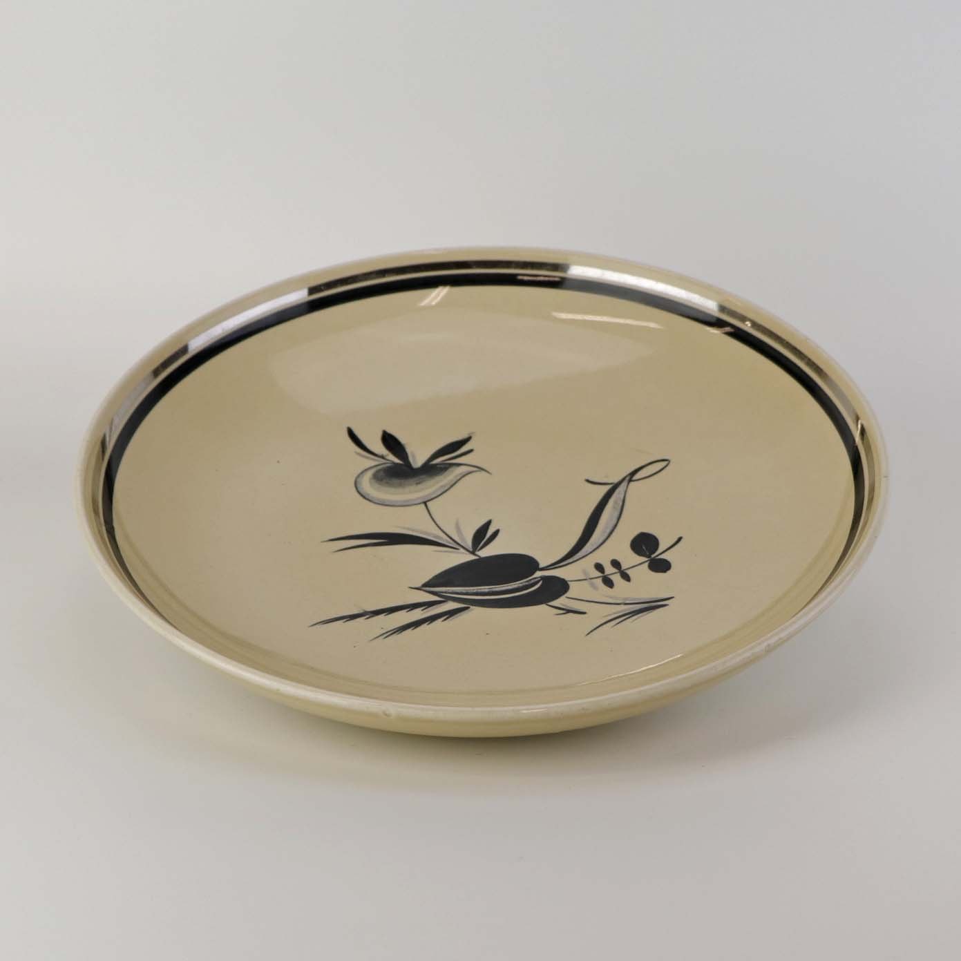 Rundt kagefad i fajance fra stellet Dragsholm fremstillet i perioden 1934-1965. Nr 256Formgiver Thorkild Olsen