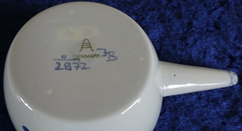 New Tranquebar or new Trankebar faience porcelain from Aluminia and Royal Copenhagen. Royal Copenhagen faience porcelain. Saucepan or sauce bowl No 2872 with lid, handle and pouring spout from Aluminia, in a good, used condition.L with handle 19cm - Ö 11.5cm - H 6.5cm