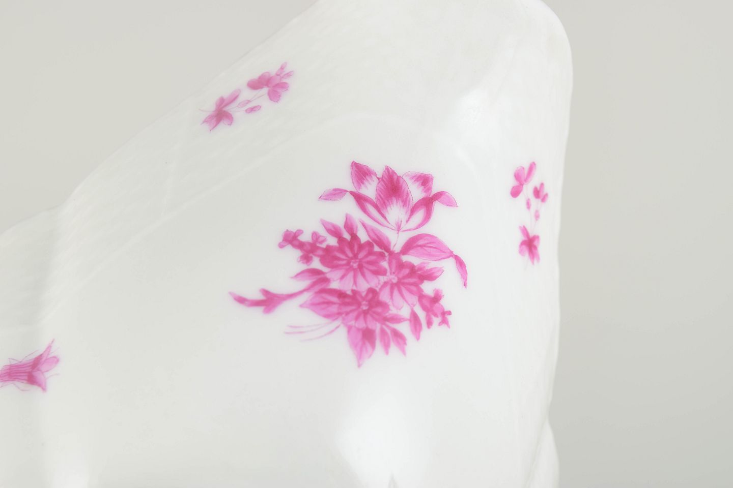 Herend Porcelain Manufactory was founded in 1826 in Herend, Hungary. The factory gained international recognition at the Great Exhibition in London in 1851 and soon became a supplier to European royal courts and aristocracy. The Apponyi pattern was developed in the late 19th century and named after the Hungarian Apponyi family. The design is characterised by stylised floral bouquets and exists in several colour variations, including the pink version.