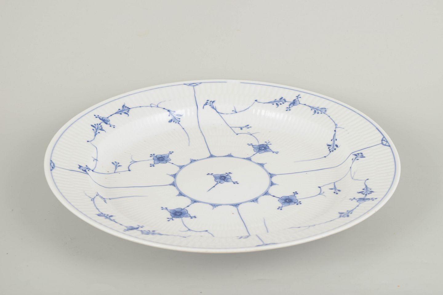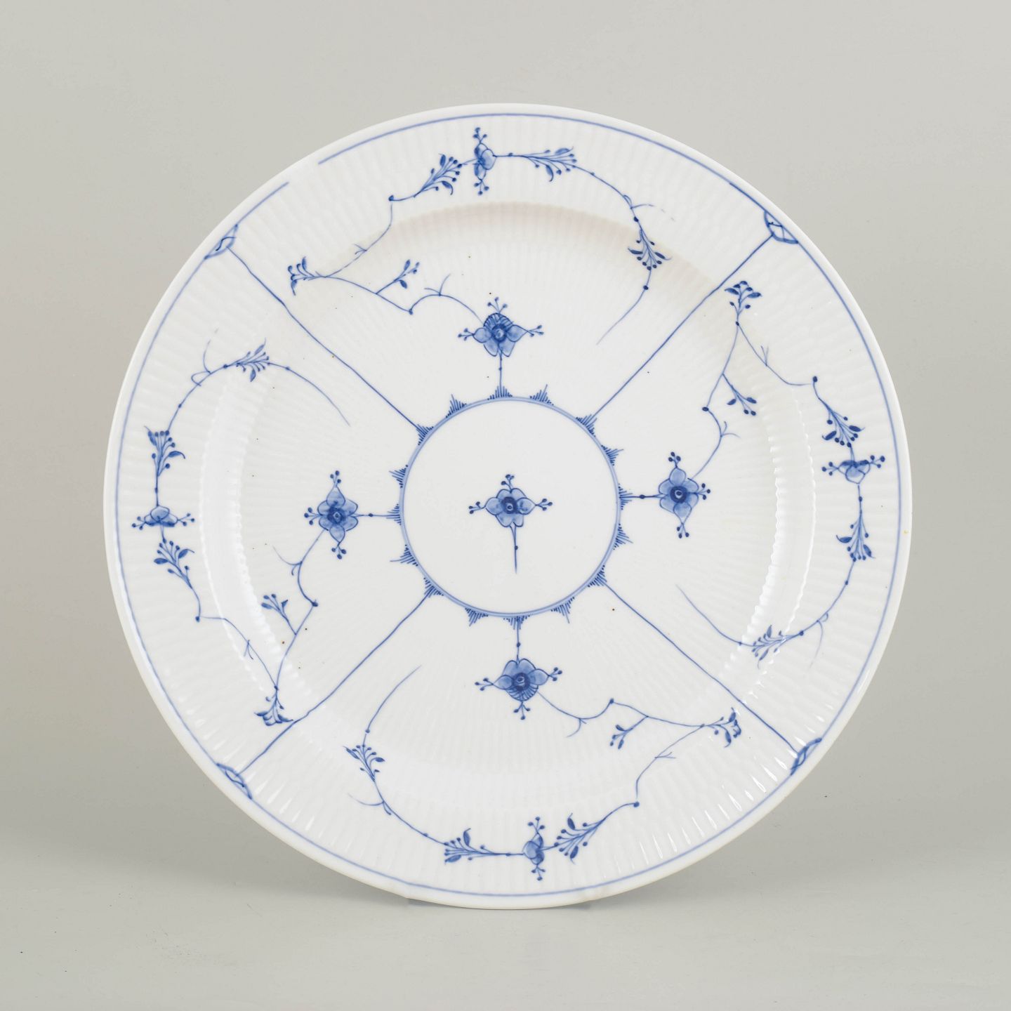 Royal Copenhagen Blue Fluted Plain large round platter.Large hand-painted round platter in the Blue Fluted Plain pattern from the 1800s. First factory quality.