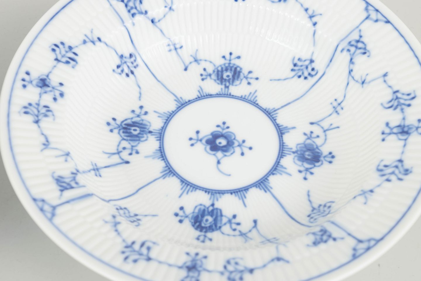 Royal Copenhagen was founded in 1775 in Copenhagen under the patronage of Queen Dowager Juliane Marie. The factory is internationally renowned for its hand-painted underglaze decoration, including the Blue Fluted Plain pattern, introduced in 1775 and still produced using traditional craftsmanship, with each piece individually decorated by skilled painters.
