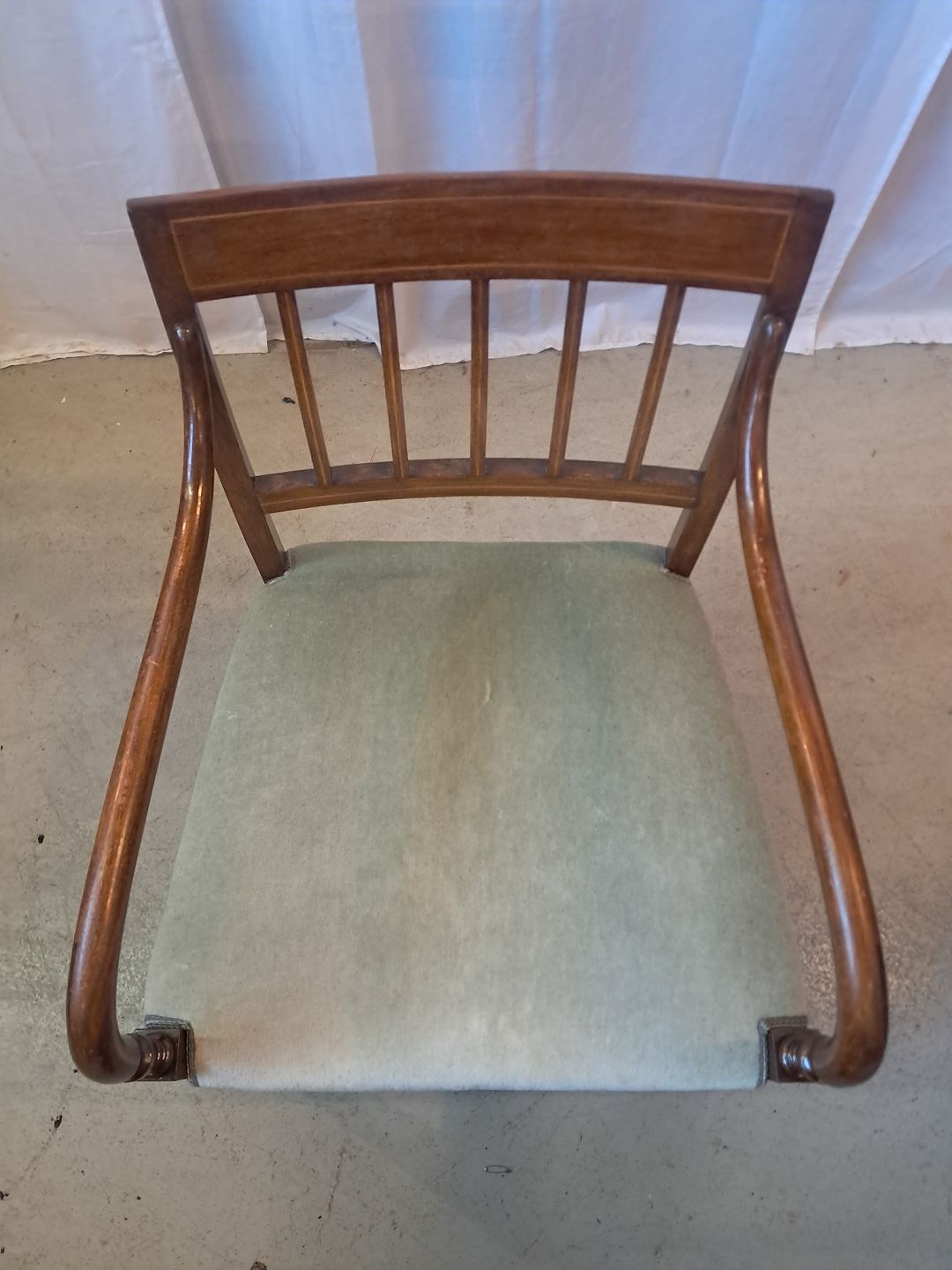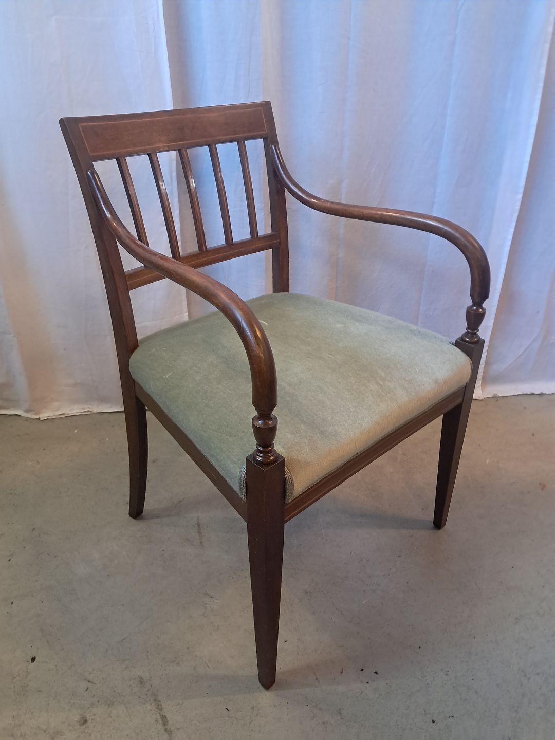 Armstol i mahogni og bøgetræ, fra 1910erne.Den har brugsspor.