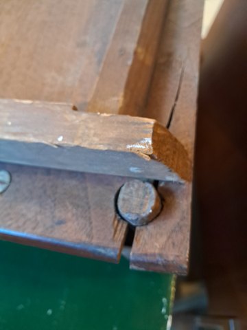 Bakkebord i massivt egetræ, fra 1910erne.Det har brugsspor og en defekt. (se foto)