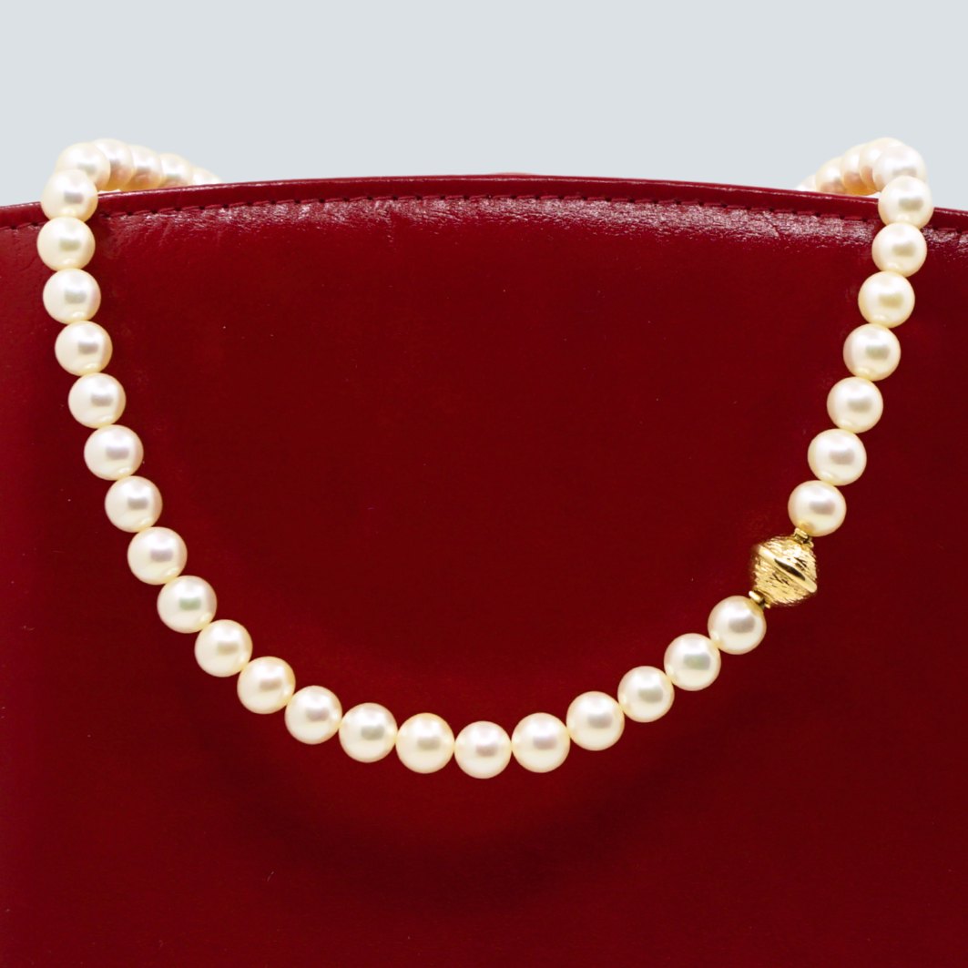 Per Borup; Clasp in 14k gold, including pearl chain.