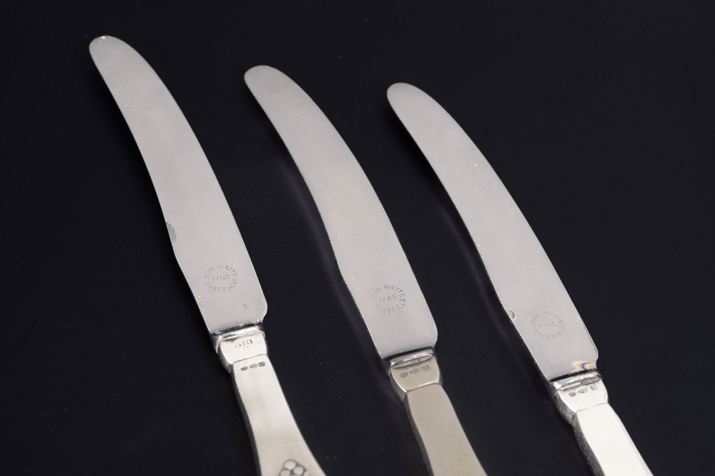 Georg Jensen, set of three fruit knives Fuchsia.Set of three fruit knives in stainless steel and sterling silver in the Fuchsia pattern from Georg Jensen. The handles are decorated with a stylised floral motif inspired by the fuchsia flower, executed in relief with soft organic lines characteristic of Georg Jensen’s early Art Nouveau designs.