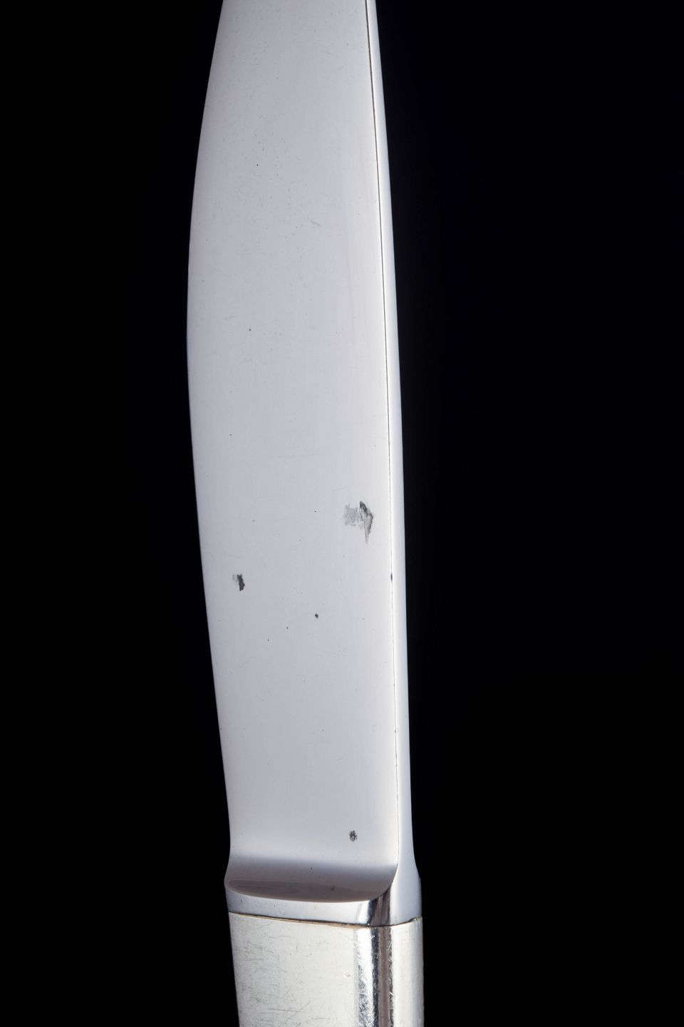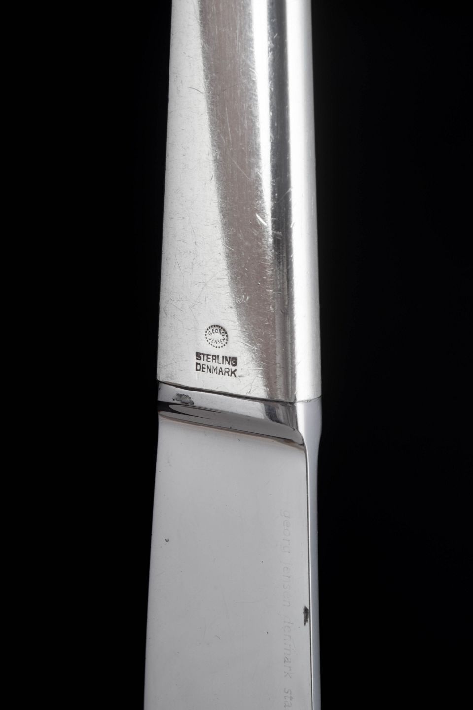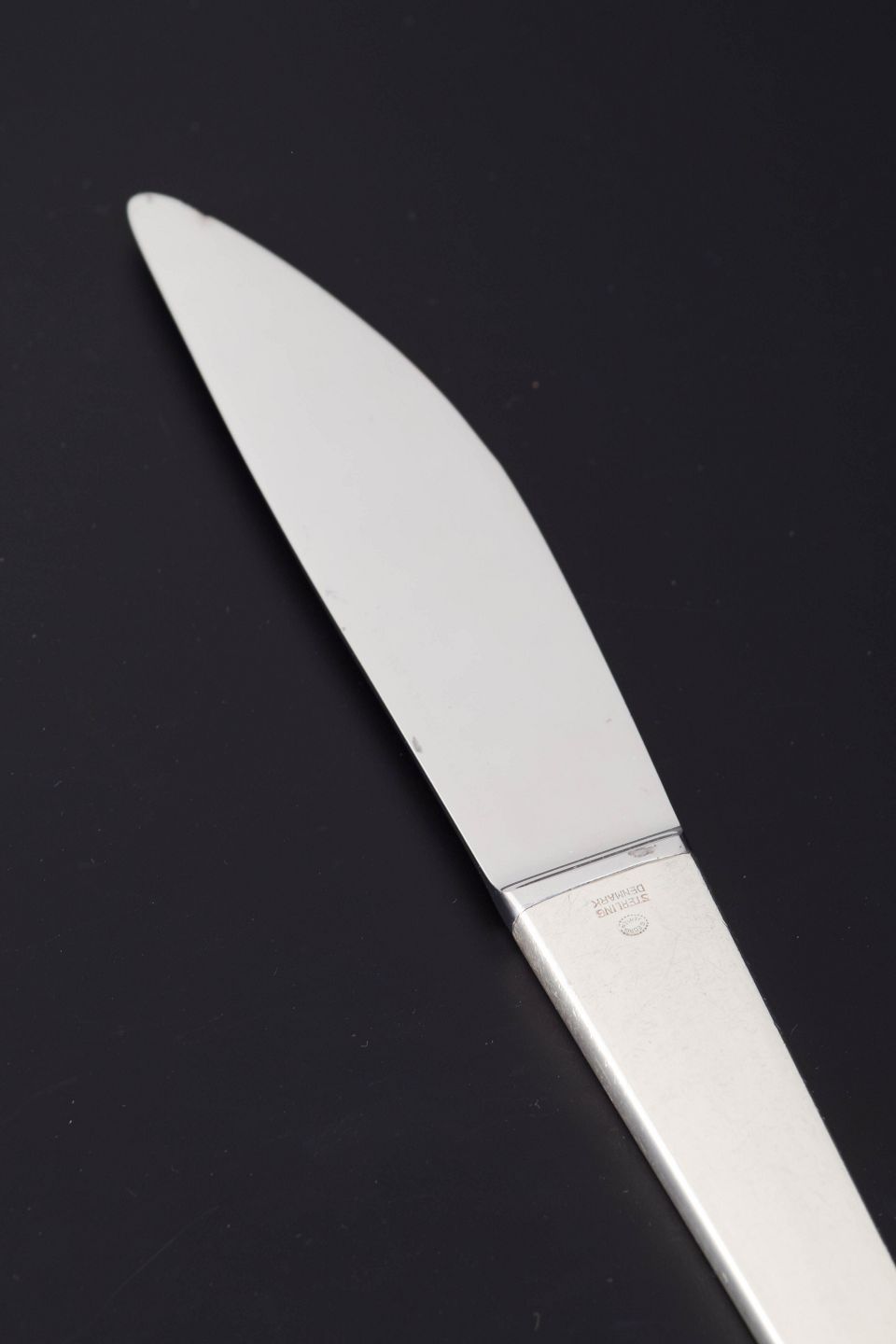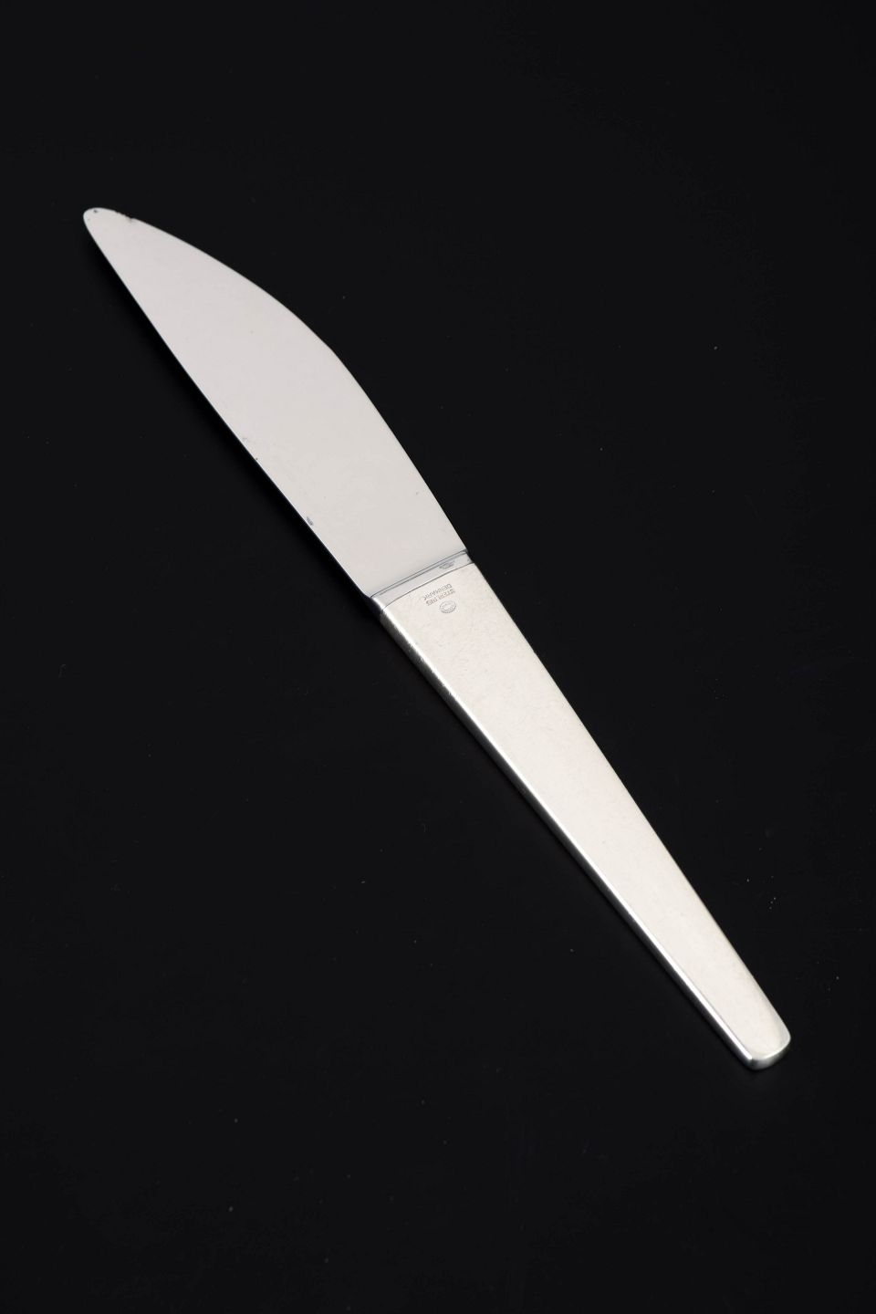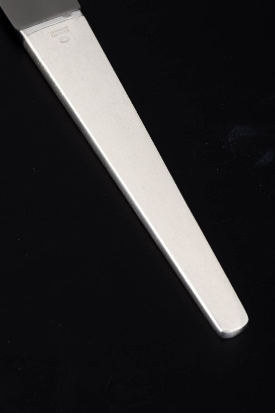 Henning Koppel for Georg Jensen, lunch knife Caravel.Lunch knife in stainless steel and sterling silver in the Caravel model designed by Henning Koppel for Georg Jensen. The design features clean modern lines and a slender tapered form characteristic of Koppel’s functionalist approach to silverware design.